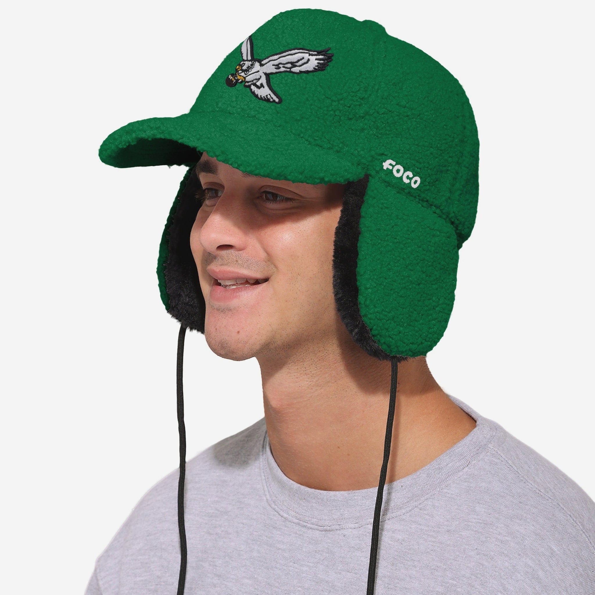 Cap, meet cozy. Meet your new winter MVP: The Philadelphia Eagles Sherpa Trapper Cap. Designed with a six-panel build and deep-curve visor, it’s a classic ballcap look with a game-changing sherpa twist. Stay warm, stay loud, and stay legendary.