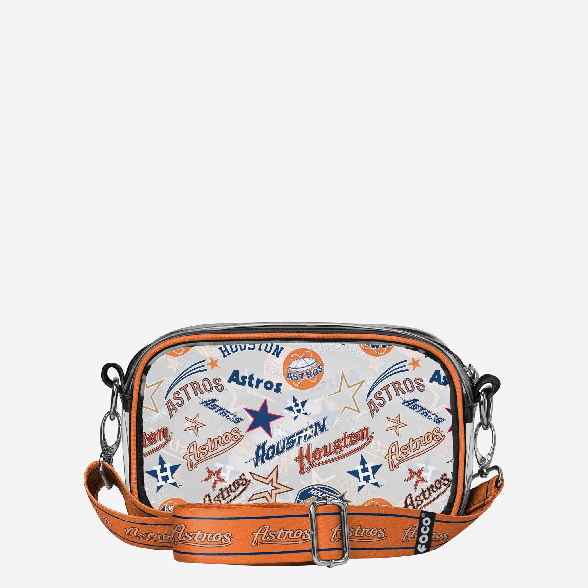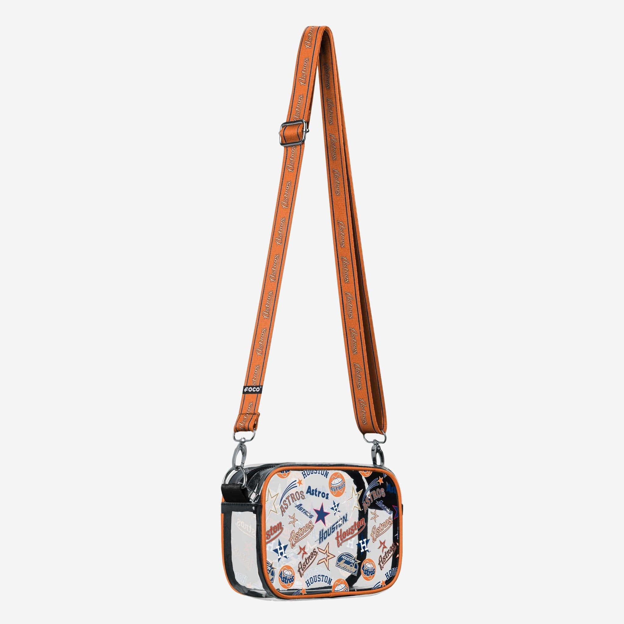 Over your shoulder and off to the game. Whether you're running errands on the town or running the tailgate in the parking lot, this Houston Astros Repeat Retro Print Clear Crossbody Bag is the perfect way to carry the team like never before.