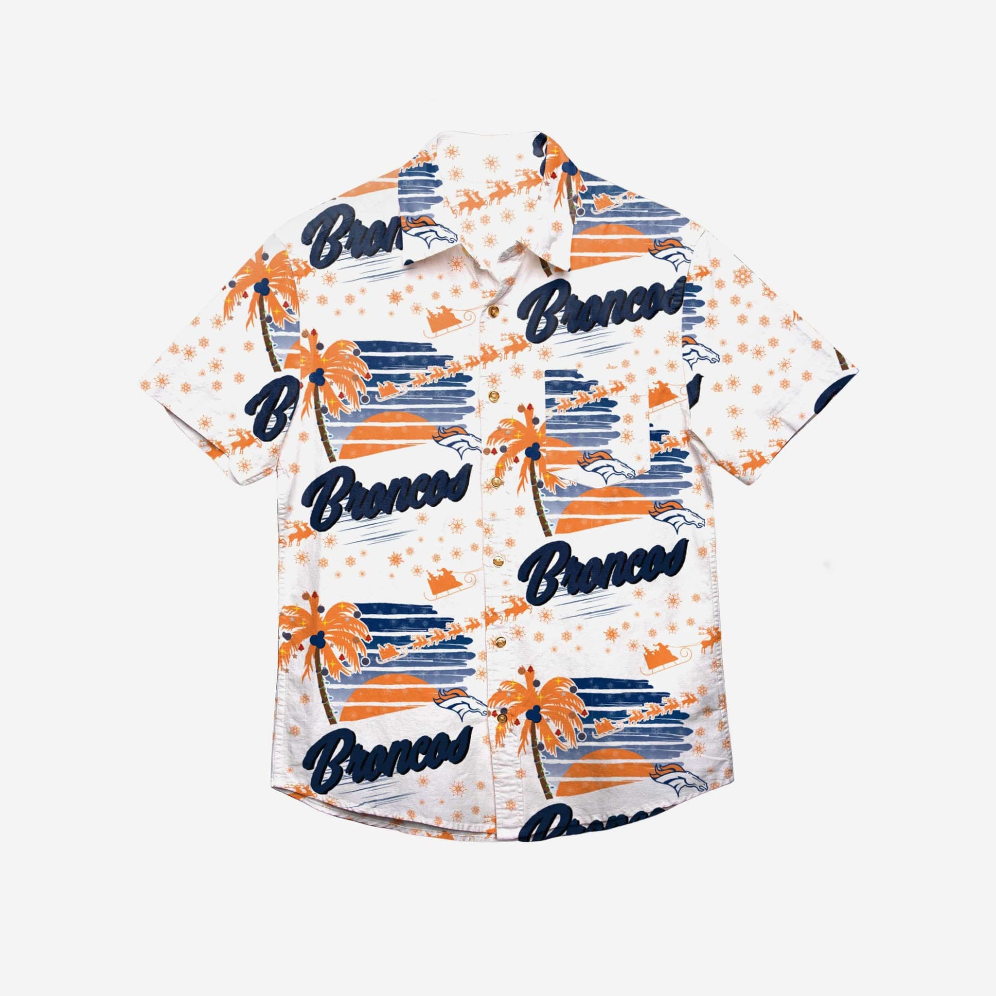 Your ability to balance fashion and fandom is the gift that keeps on giving. Show it off and get ready to be the talk of the holiday party in this Denver Broncos Winter Tropical Button Up Shirt.