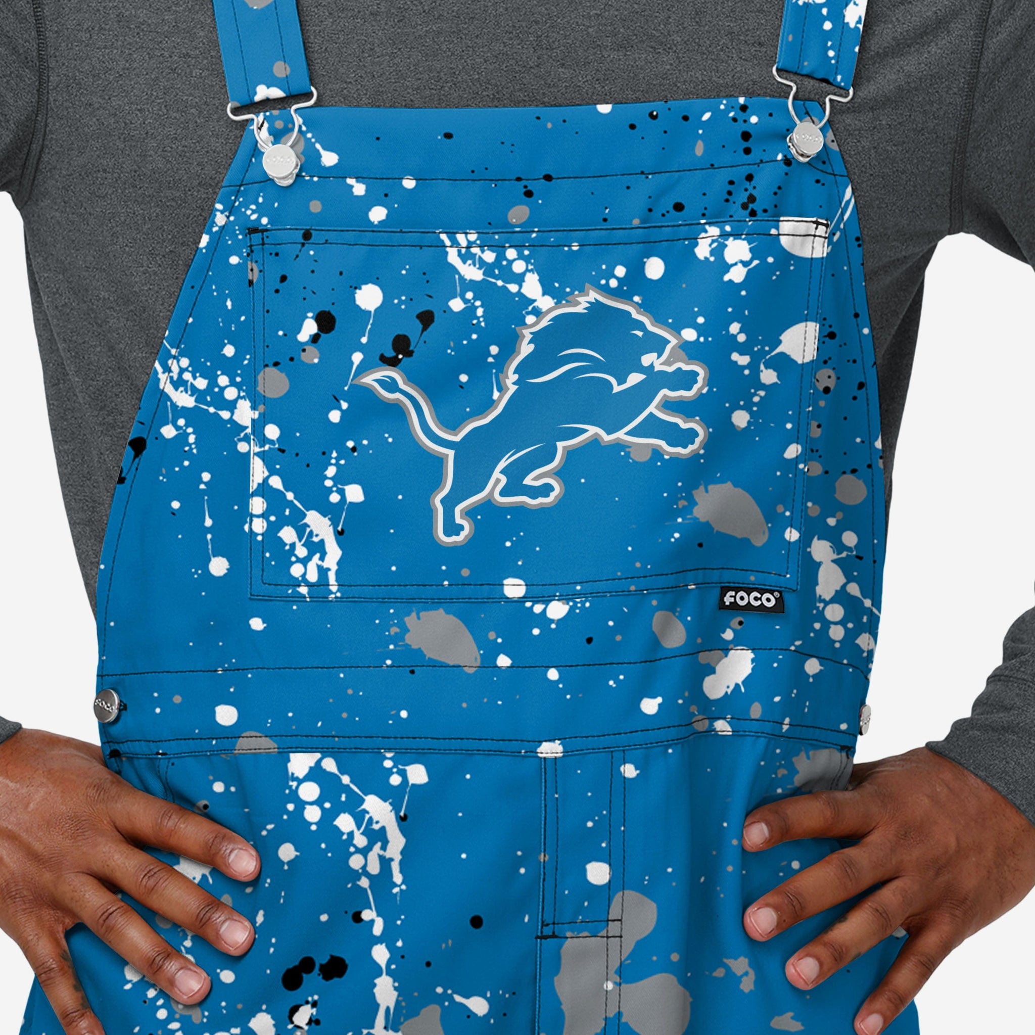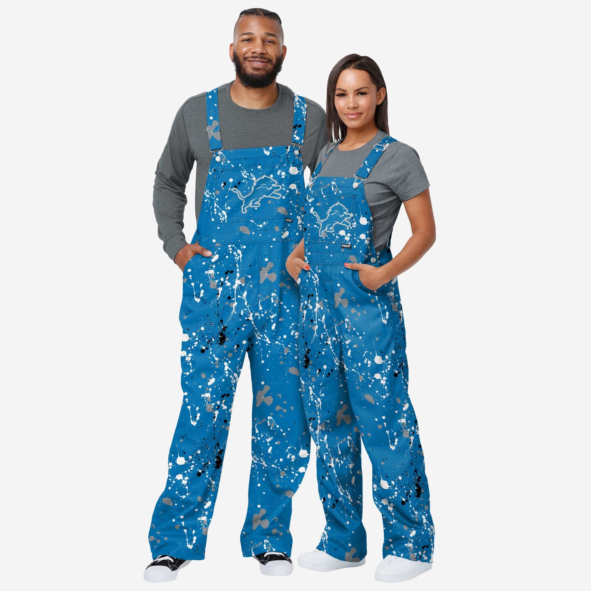 Detroit Lions Mens Paint Splatter Bib Overalls FOCO S - FOCO.com