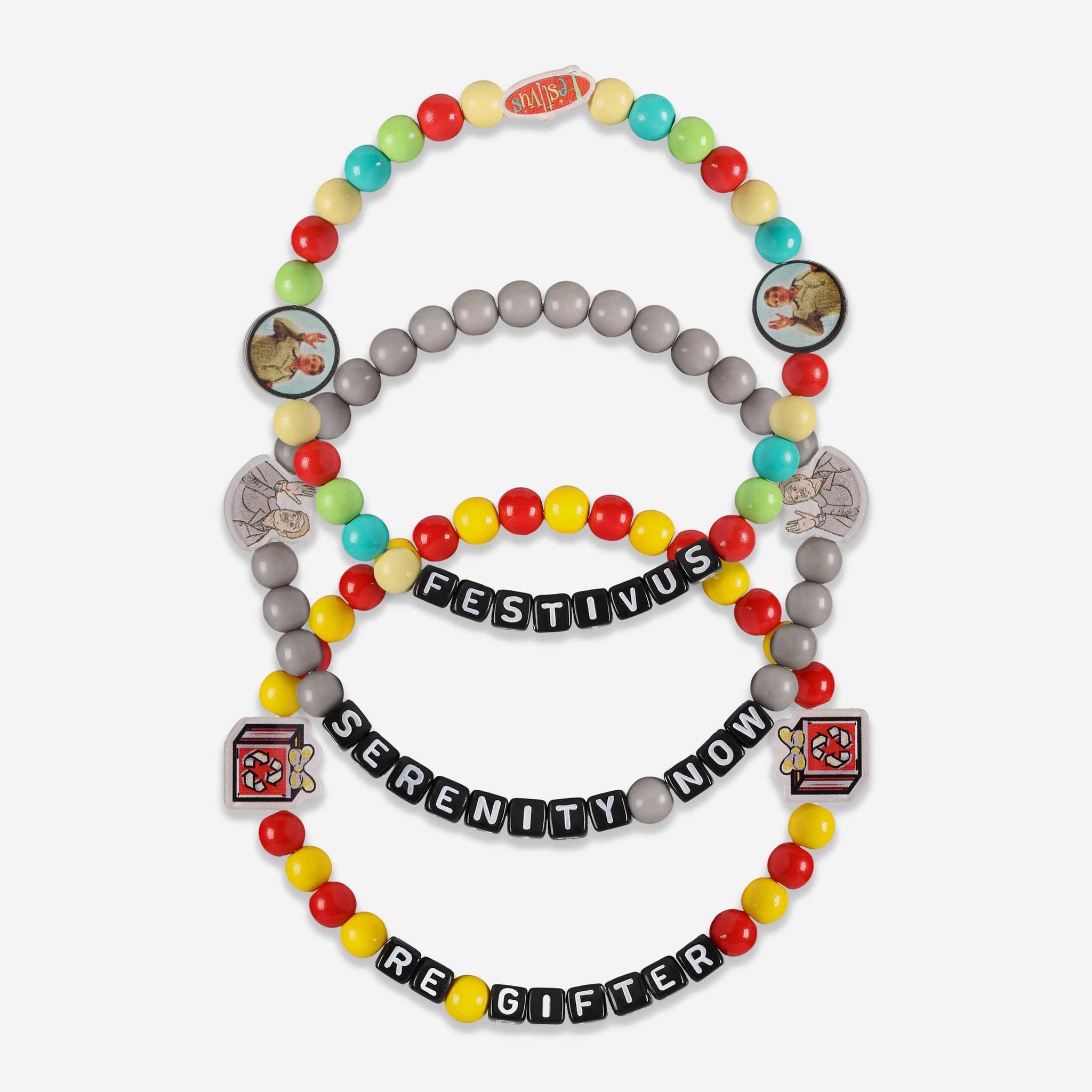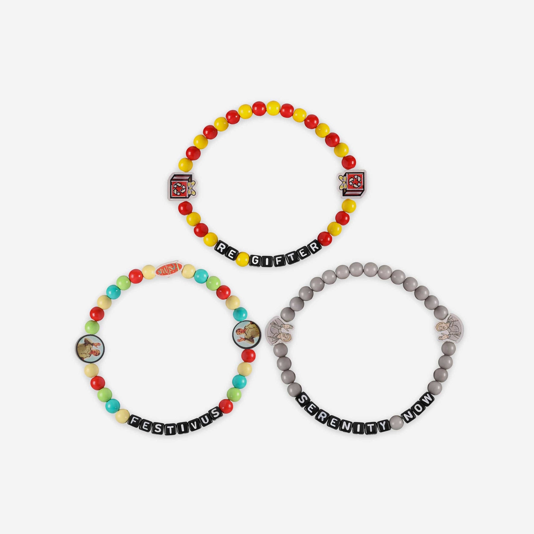 Step up your fan fashion sense with this Frank Costanza & Festivus Seinfeld 3 Pack Beaded Friendship Bracelet. These matching friendship bracelets have an all-over design and thematic displays, which makes them the perfect way to show your support for Seinfeld and show off your unique sense of style.