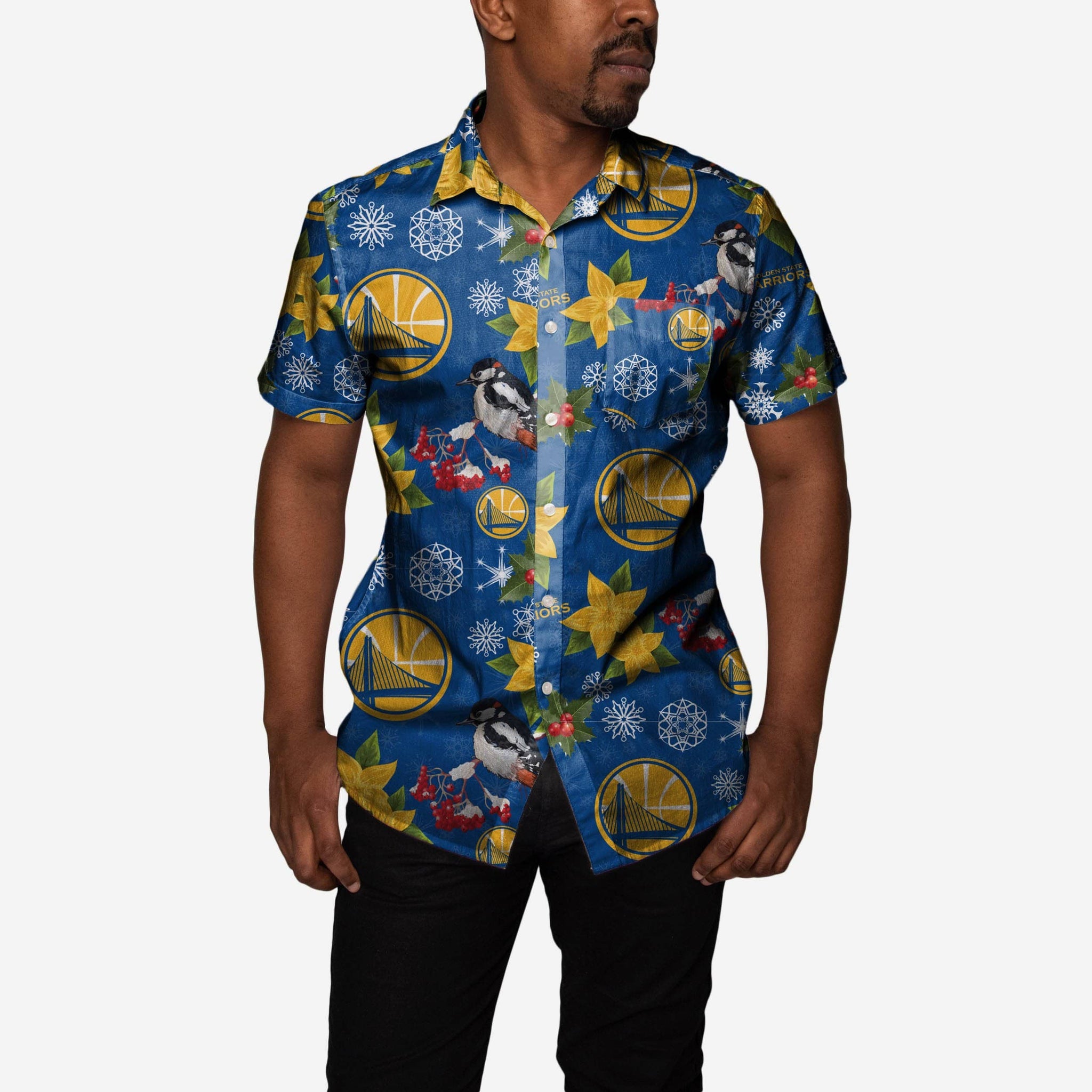 Golden State Warriors Mistletoe Button Up Shirt FOCO - FOCO.com