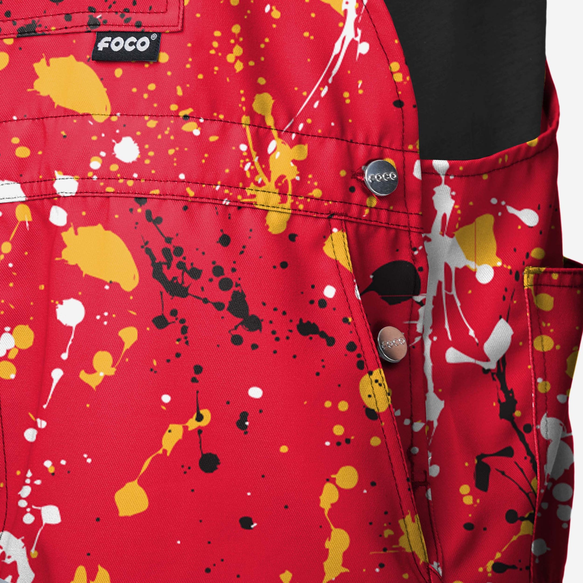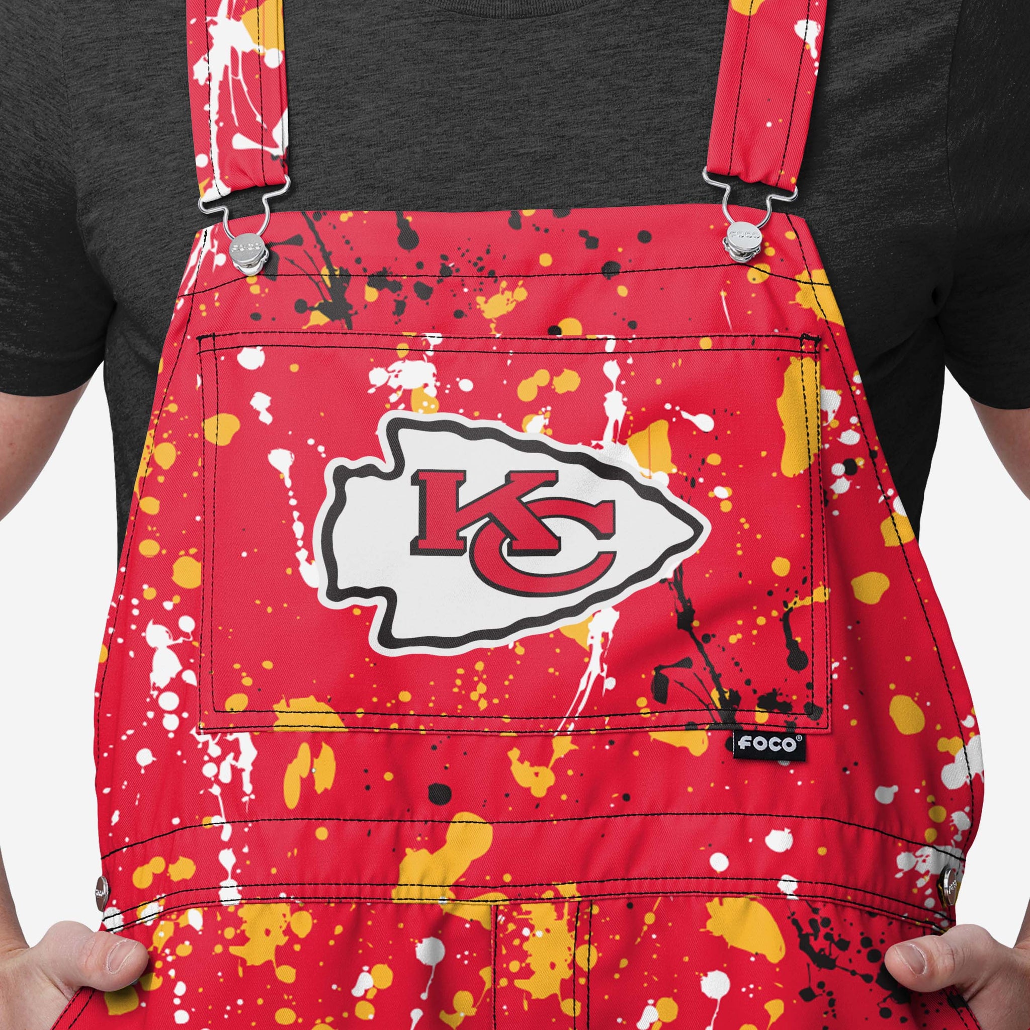 Show your team spirit in these stylish and comfortable Kansas City Chiefs Men's Paint Splatter Bib Shortalls. With their all-over team-colored design and bold team logo display, these shortalls are the perfect way to show your support for the Kansas City Chiefs while reminding everyone that your fandom is a masterpiece that even history’s greatest artists would bask in the glory of.