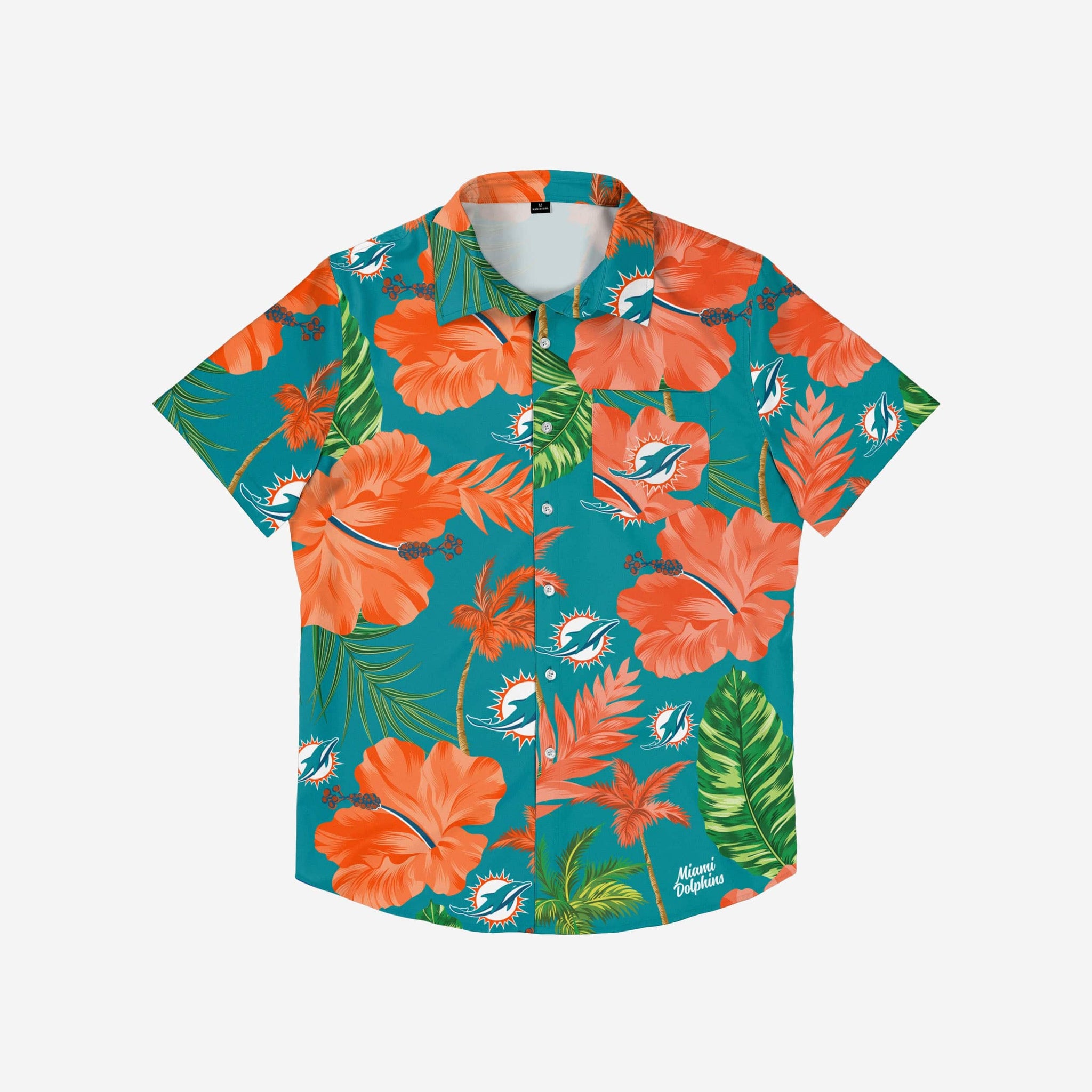 If you're getting ready to host a gameday watch party, tailgate, or luau, then we've got the perfect shirt for you. Say "aloha" to the Miami Dolphins Team Color Hibiscus Button Up Shirt.