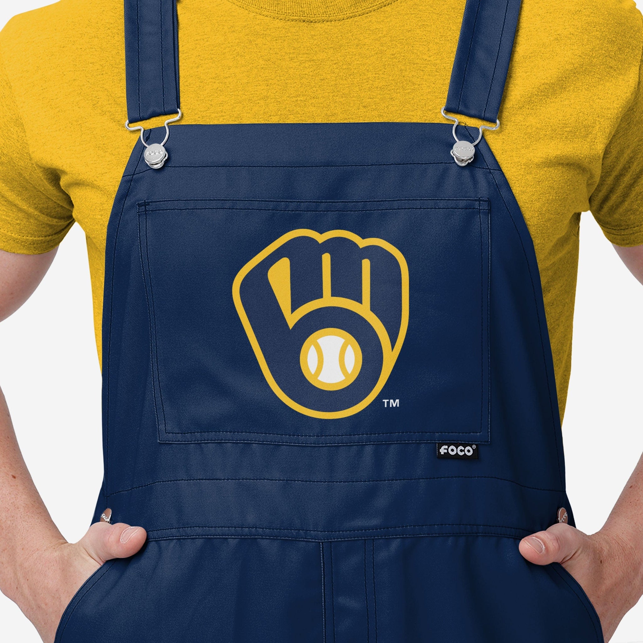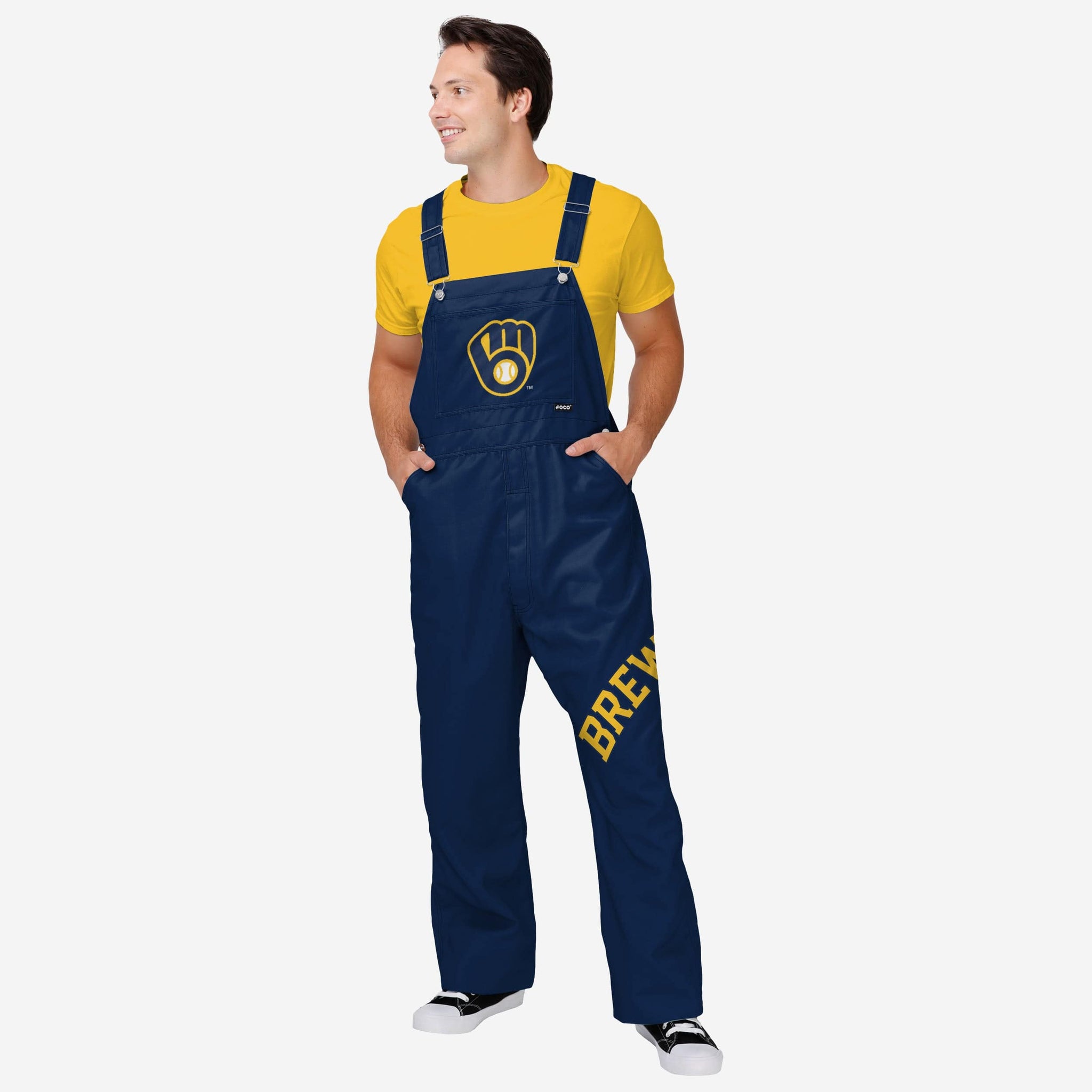 Milwaukee Brewers Mens Big Logo Bib Overalls FOCO S - FOCO.com