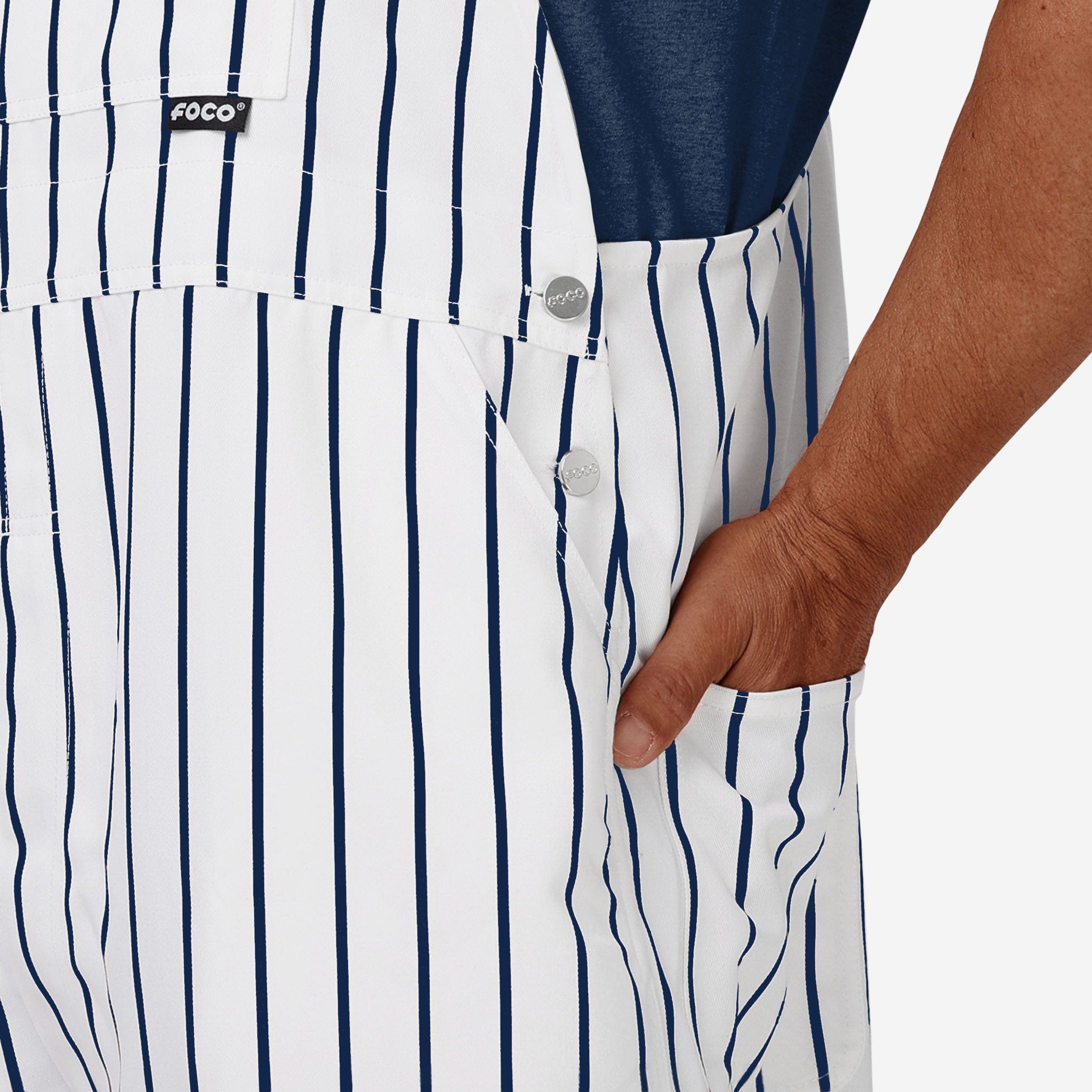 The bib pocket is perfect for storing your phone, wallet, or other essentials, and the adjustable bib shoulder straps ensure a comfortable fit. Two back pockets provide even more storage space. These overalls are made of sturdy and functional woven polyester canvas that is lightweight and breathable. They are long enough to provide coverage and durability, so you can focus on cheering on your team without worrying about your outfit. This pinstripe style is so perfect for gameday that there's a good chance you'll be on the receiving end of a whole lot of postgame high fives and fist bumps, because your fellow fans will deem you the star of the game, responsible for every big play.