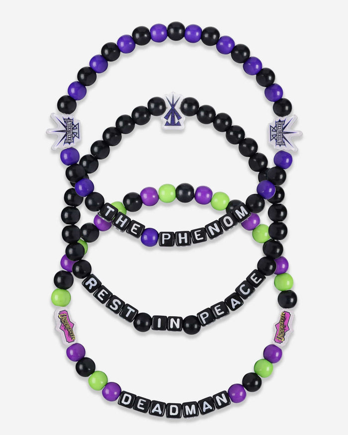 A whole new way to rep your favorite superstar in style is here. Step up your fan fashion sense with this Undertaker WWE 3 Pack Beaded Friendship Bracelet. These matching friendship bracelets have an all-over team-colored design and team logo displays, which makes them the perfect way to show your support for The Phenom from the opening bell to pinfall, and every day in between.