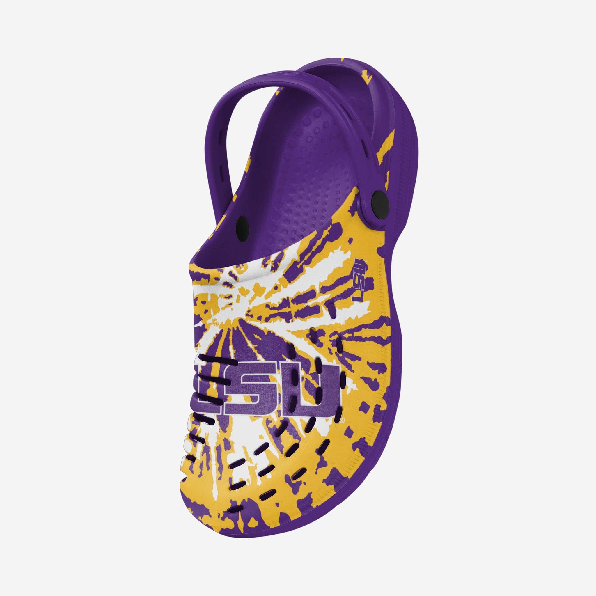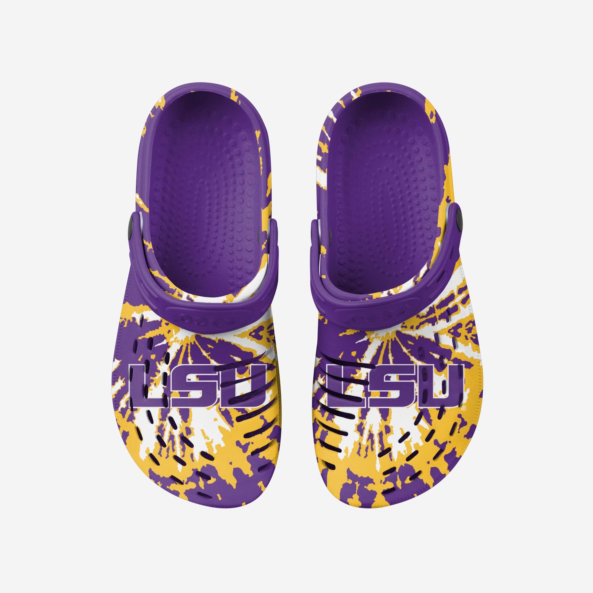 Enjoy a heaping helping of groovy goodness by standing out in these LSU Tigers Tie-Dye Clogs with Straps.