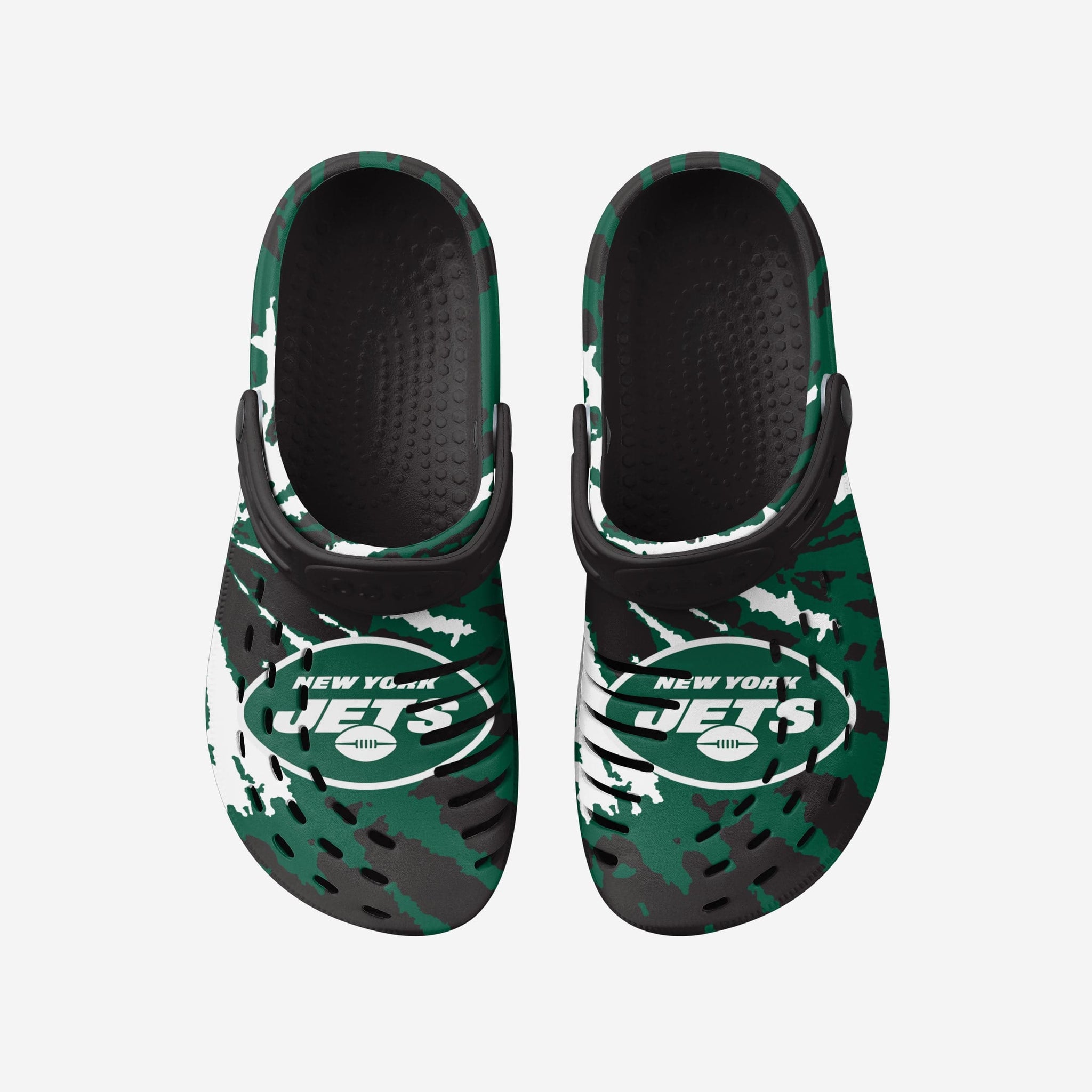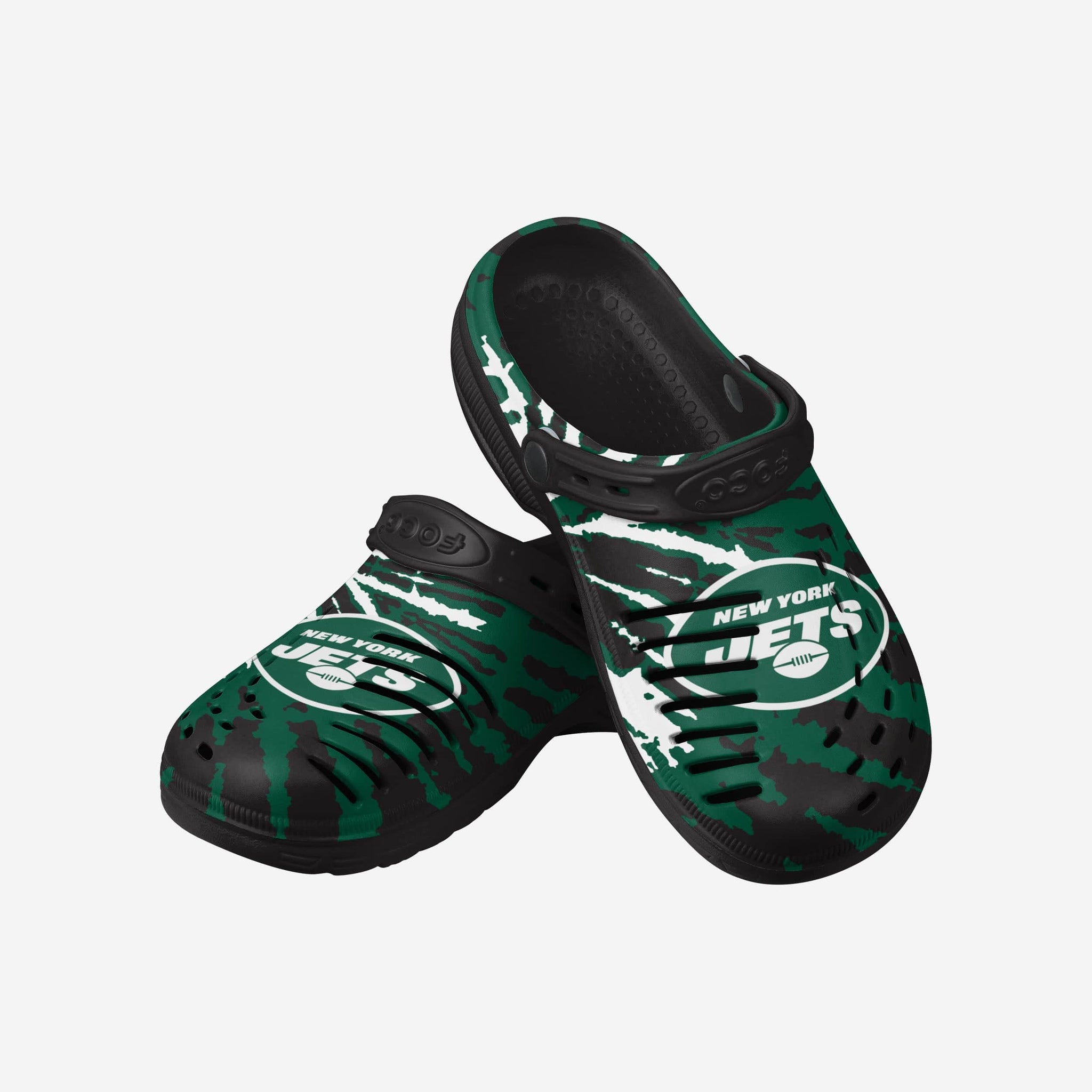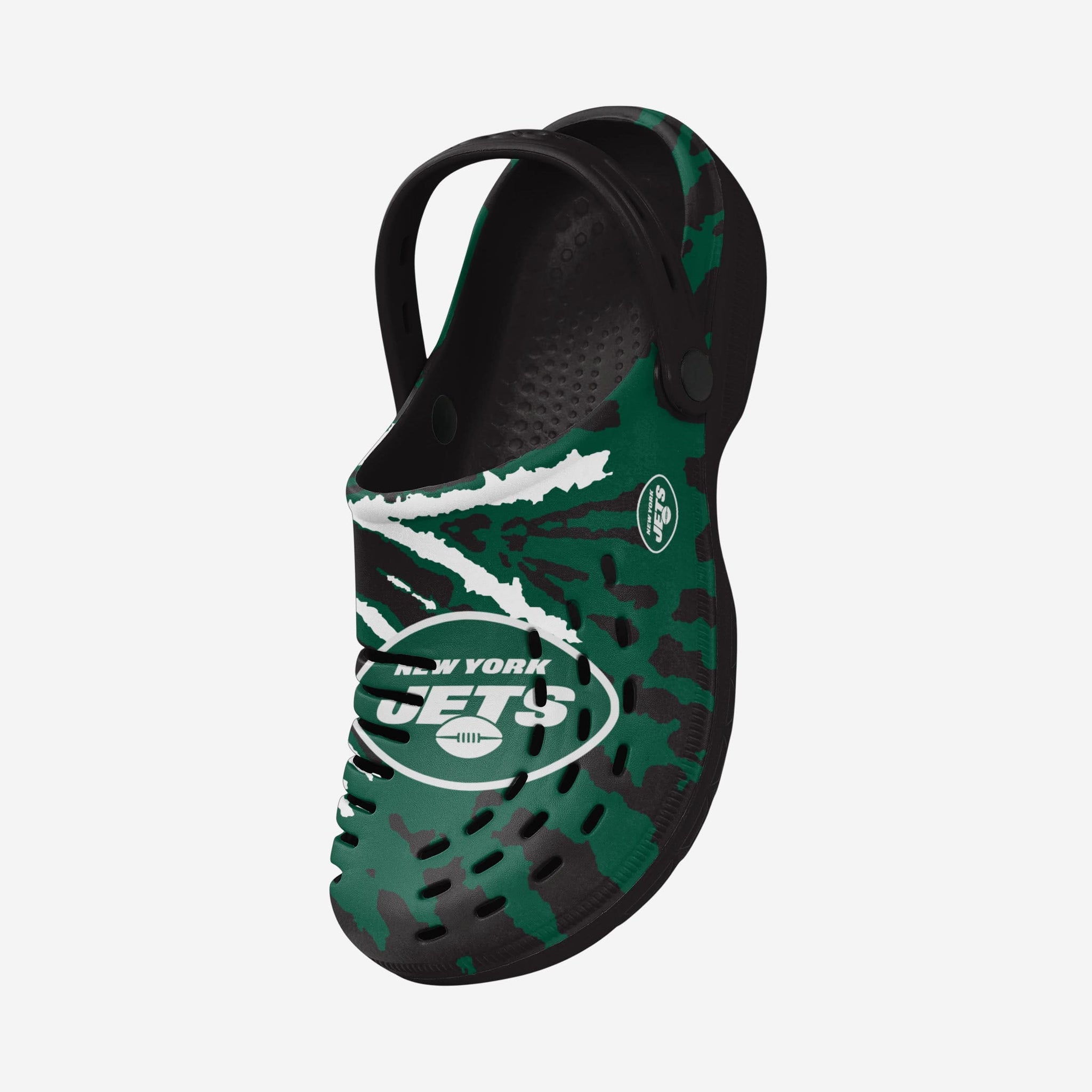 Enjoy a heaping helping of groovy goodness by standing out in these New York Jets Tie-Dye Clogs with Straps.