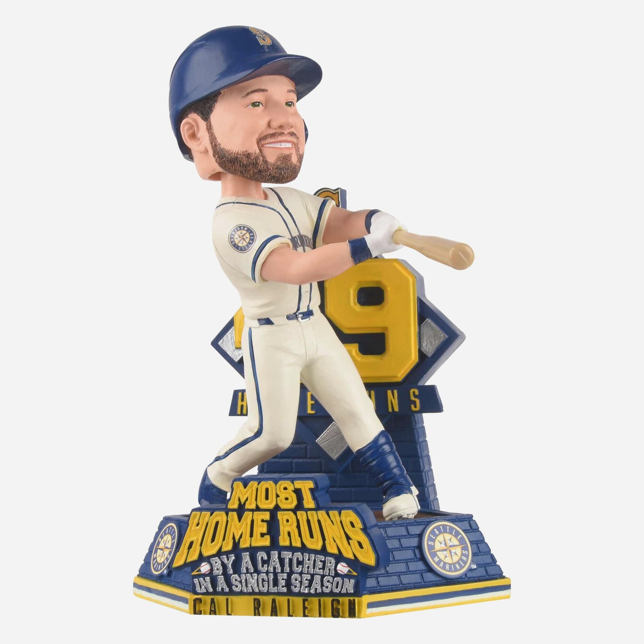 Catcher. Slugger. Legend. Big Dumper is the first catcher in MLB history to reach 49 home runs in a single season, and you can celebrate in your collection with this Cal Raleigh Seattle Mariners Single Season Catcher Home Run MLB Record Bobblehead.
