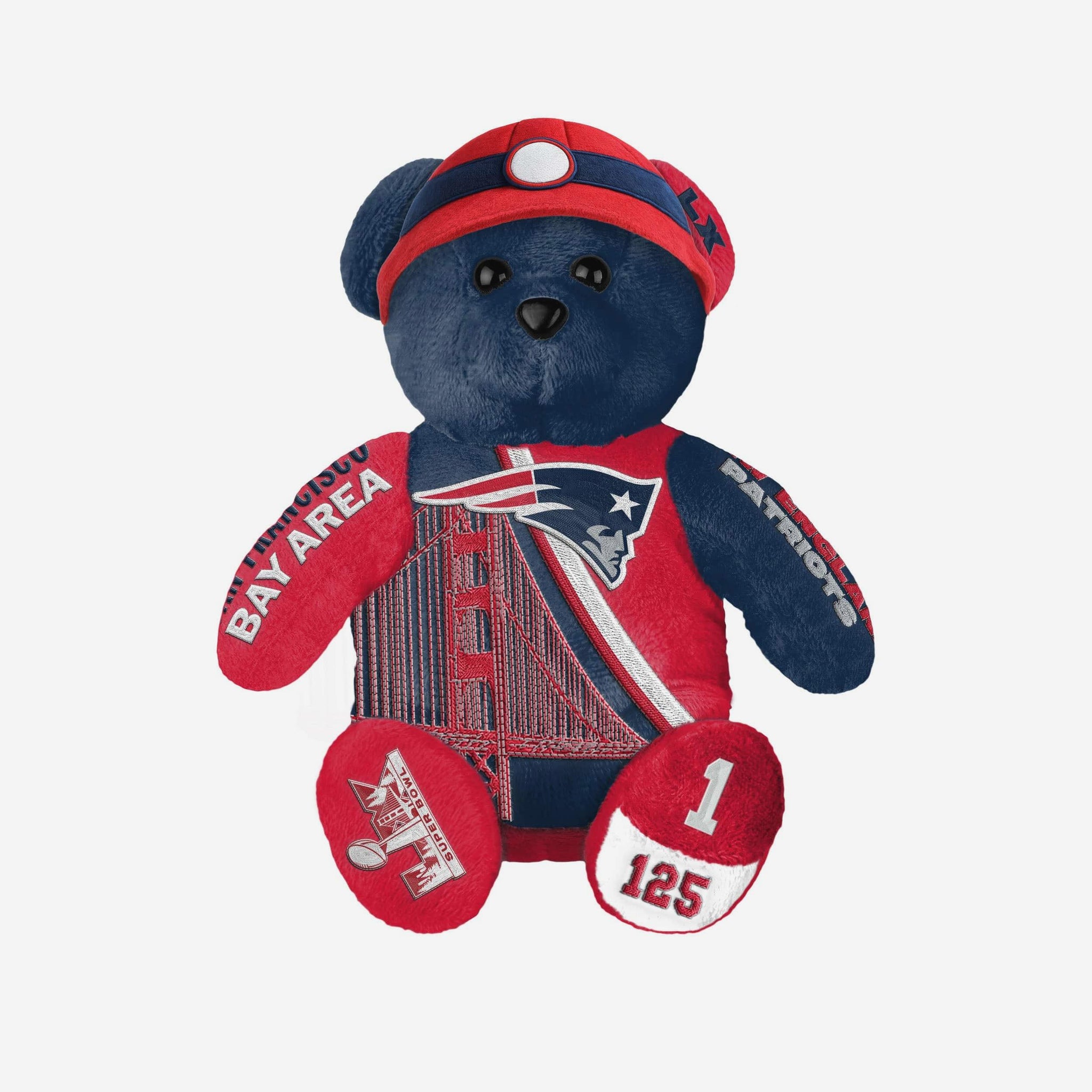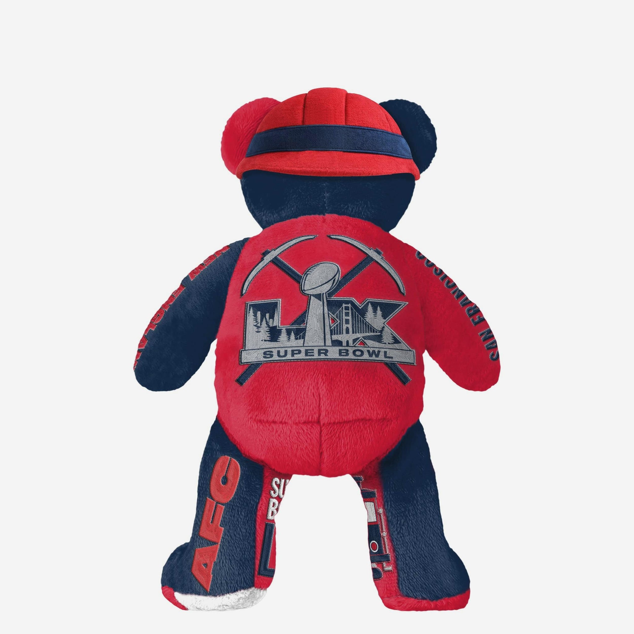 • Bay Area–themed graphic accents displayed throughout the bear to honor the Super Bowl LX location