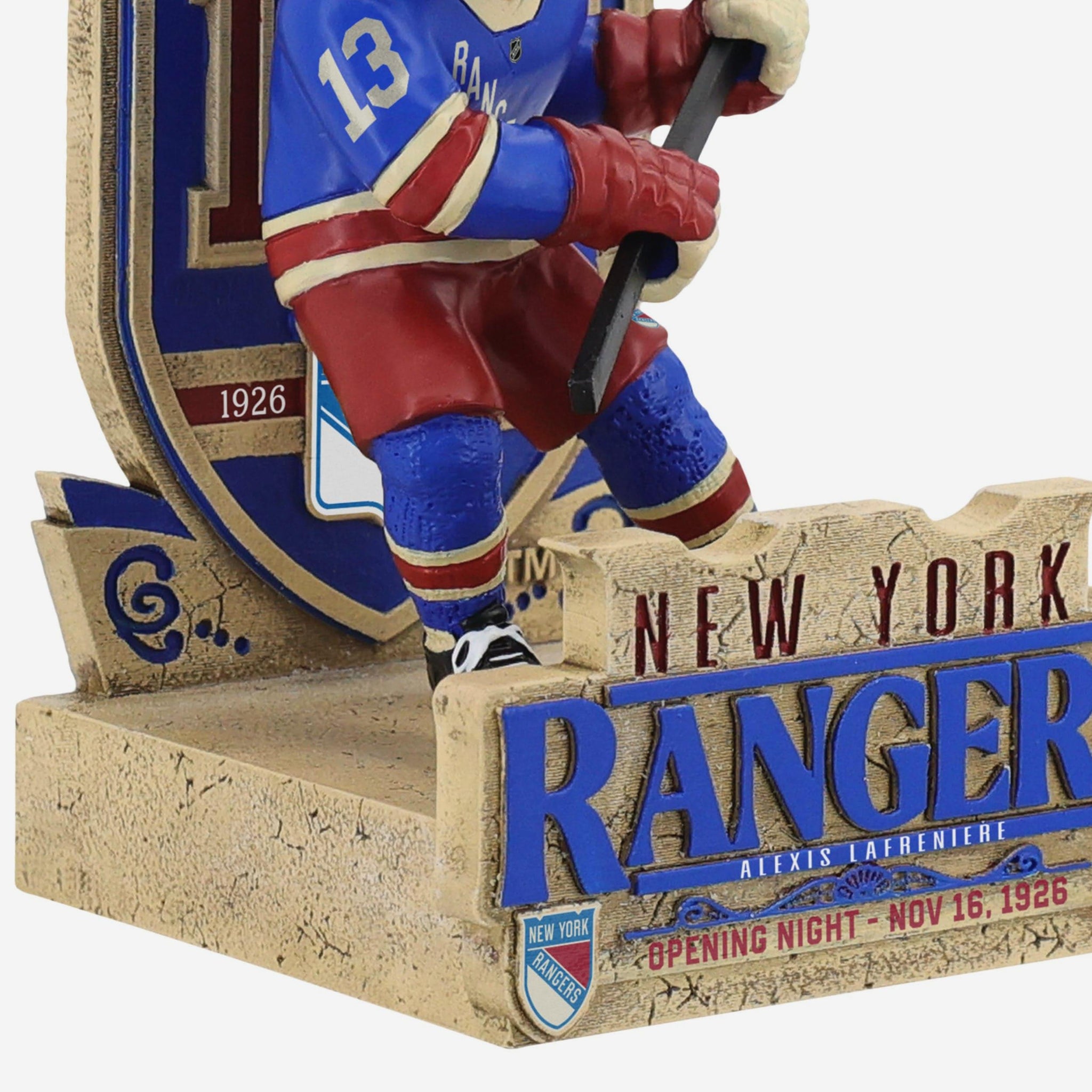 • “NEW YORK RANGERS” sculpted wordmark across the front of the base for statement team pride