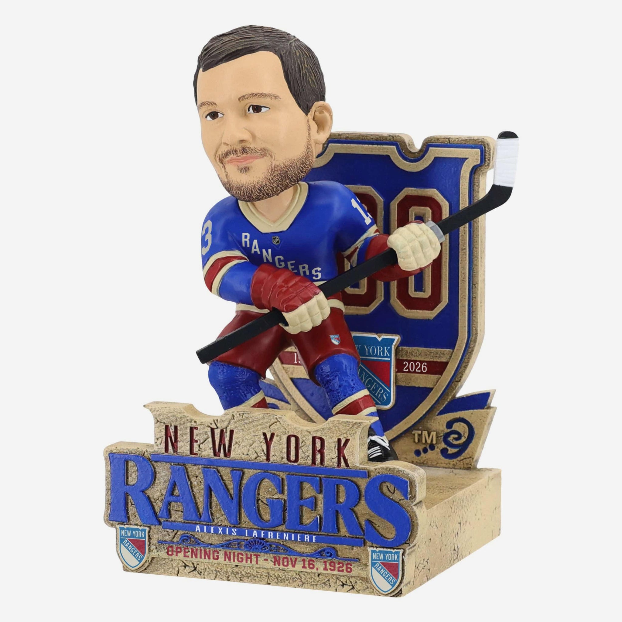Raise your sticks to 100 years of Broadway hockey! Celebrate the next generation of Rangers greatness with this Alexis Lafrenière New York Rangers Centennial Bobblehead.