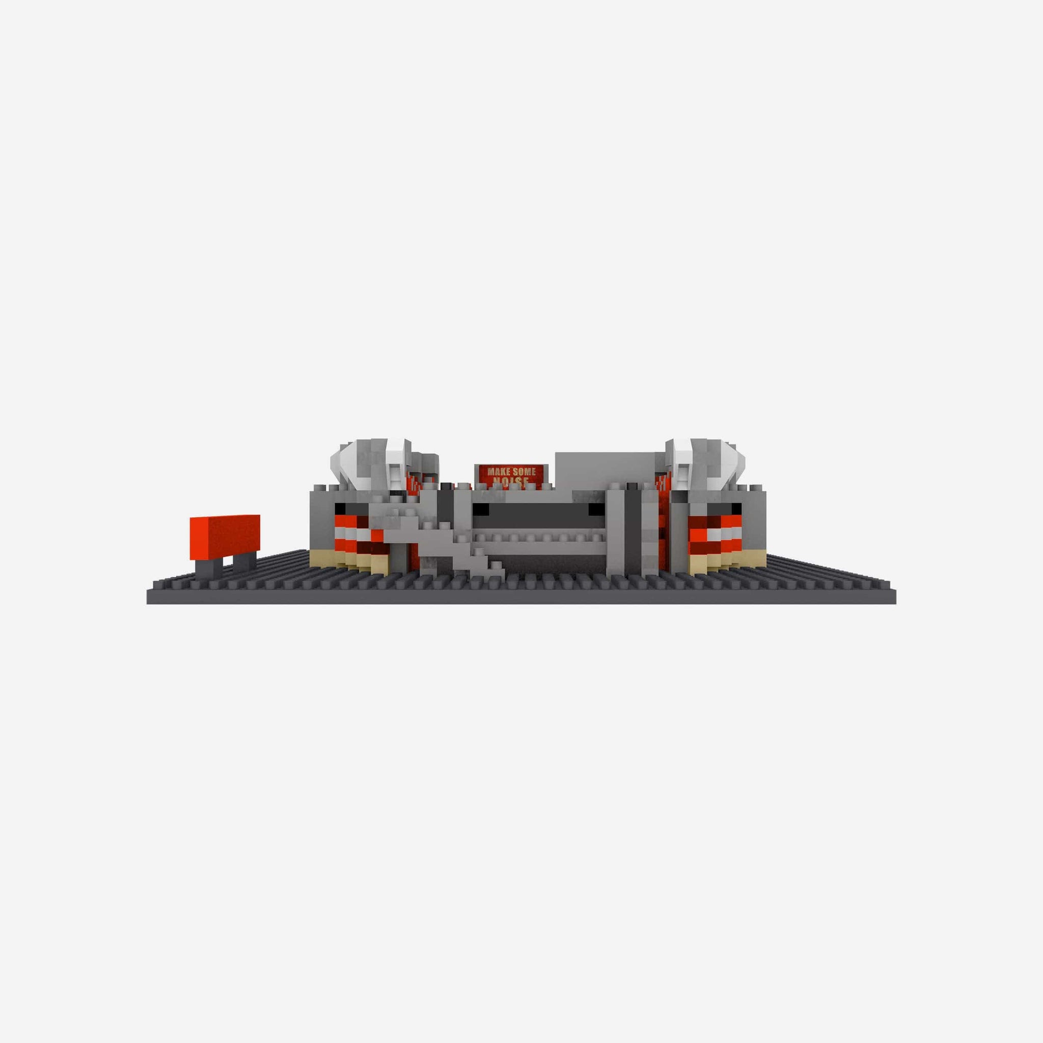 - Construction toy that assembles into miniature replica stadium that will be the centerpiece of your collection