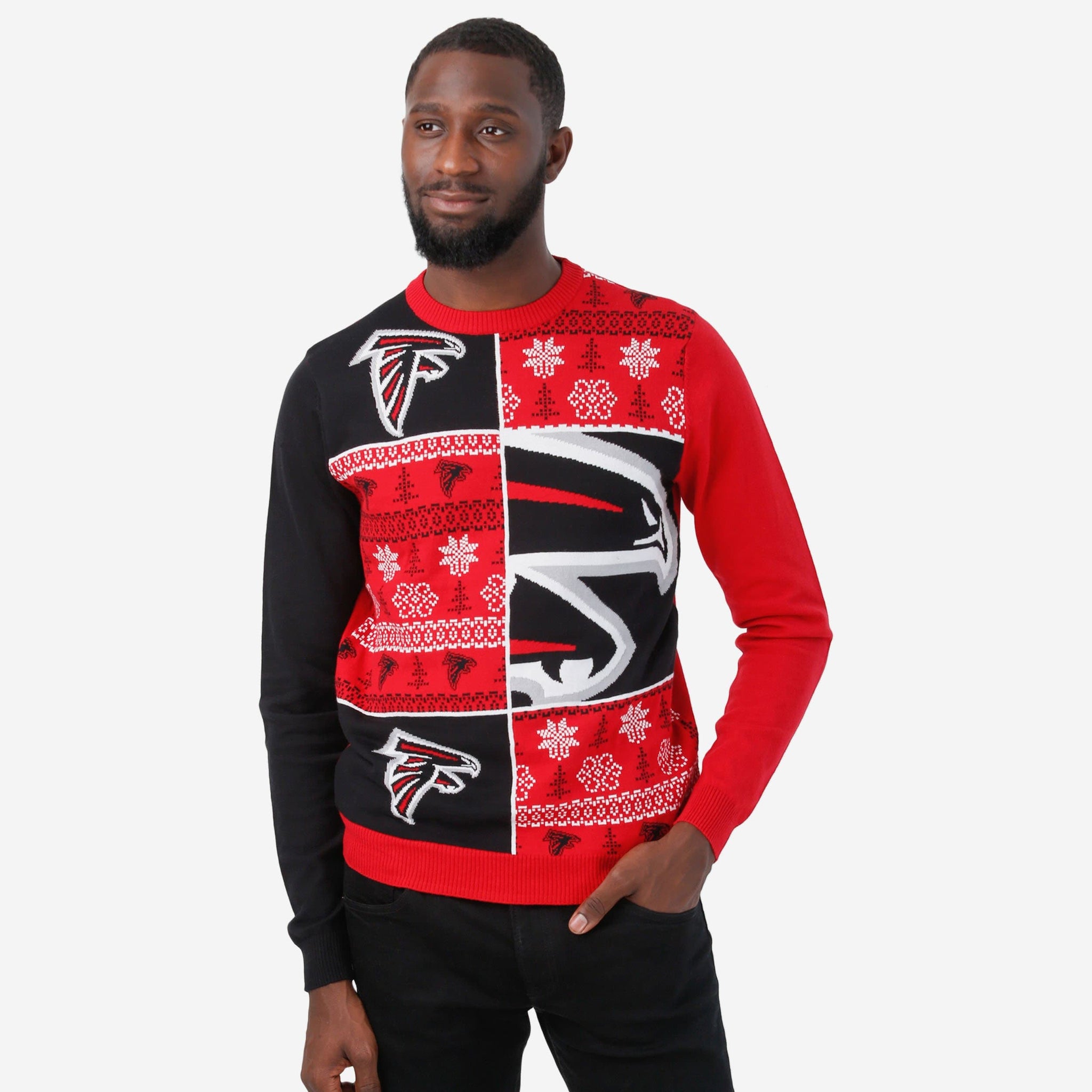 We know you're going to be busy this holiday season, so we're bringing you a busy holiday sweater to match! Spread some holiday cheer while you cheer the team on to victory at every Christmas sweater party by rocking this Atlanta Falcons Busy Block Snowfall Sweater!