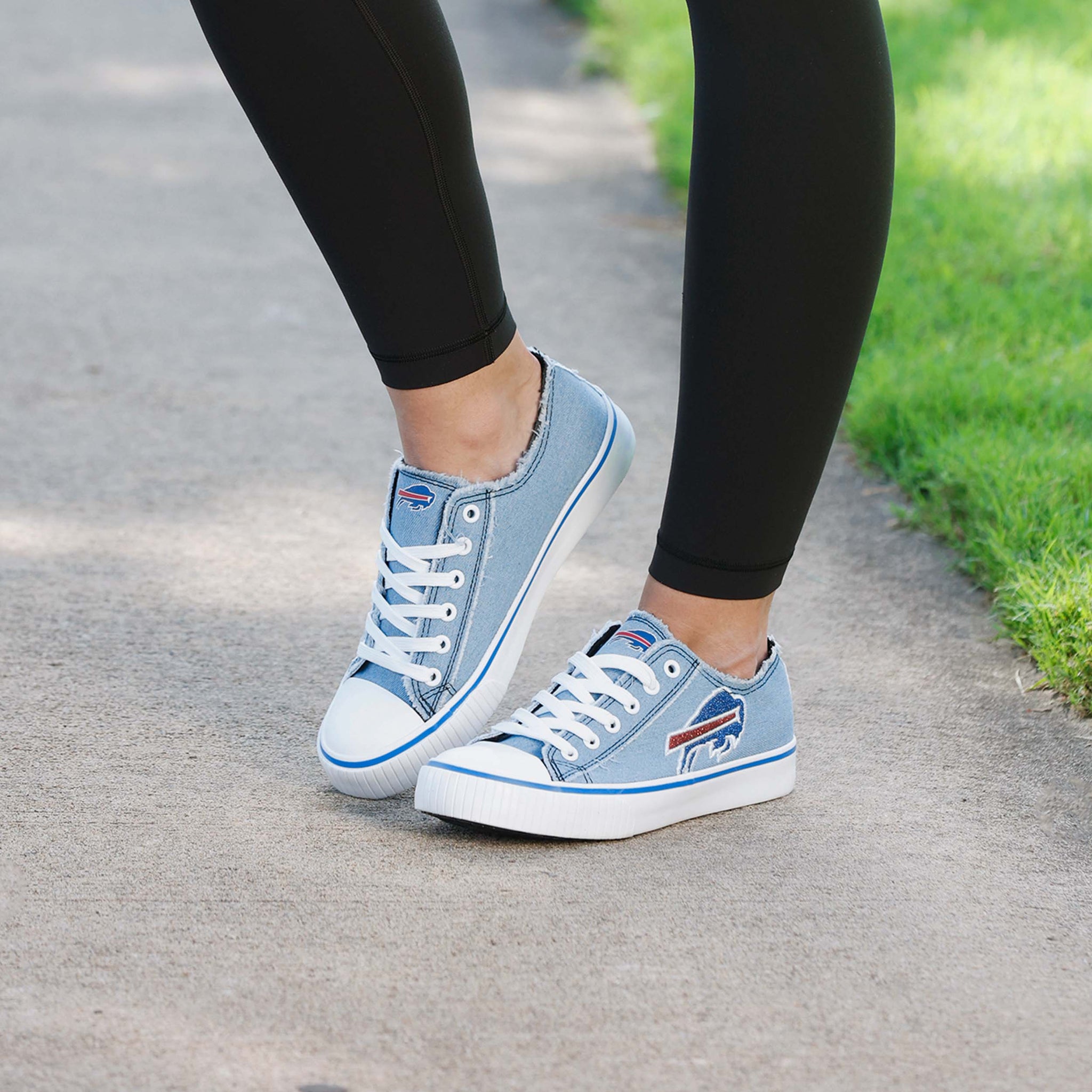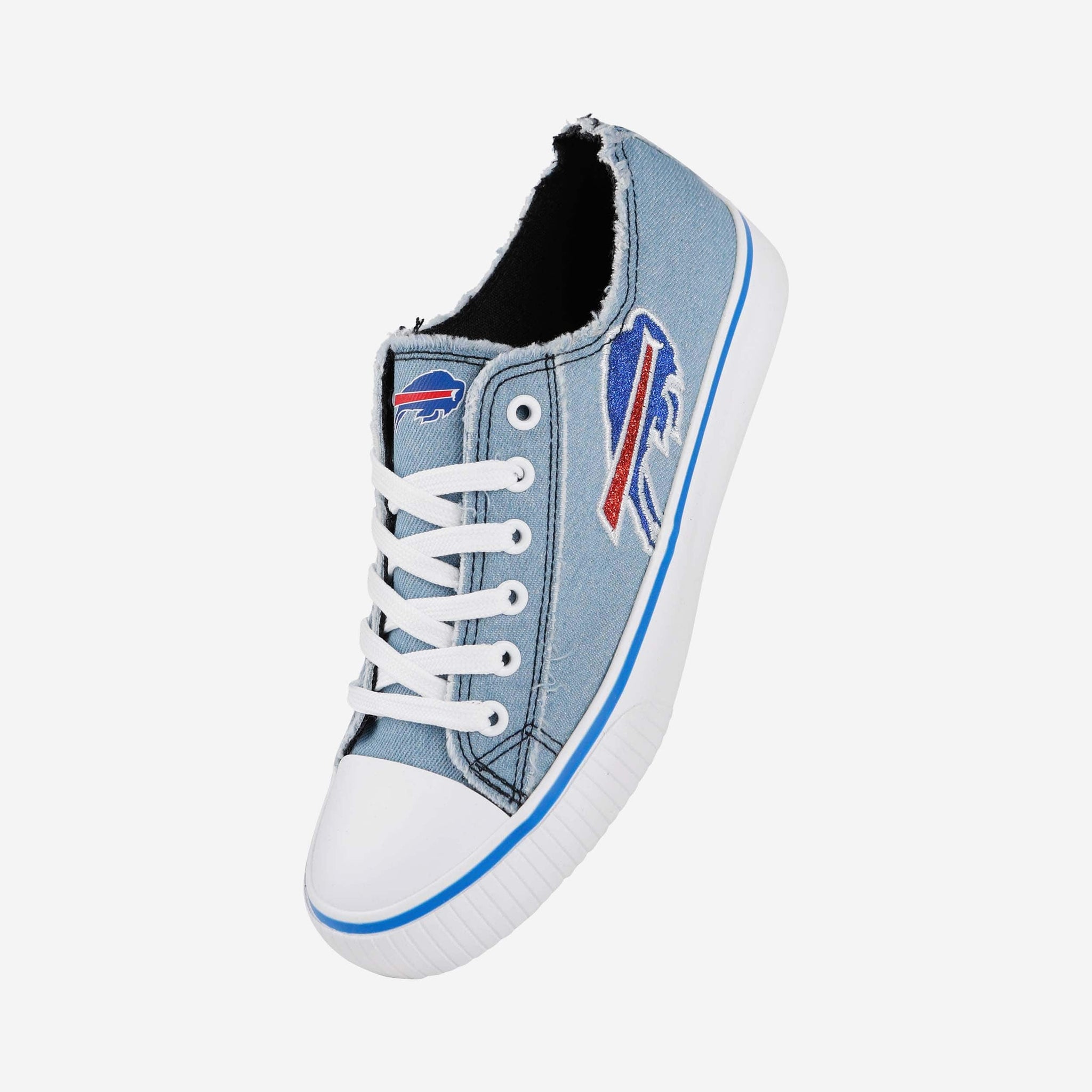 Nobody can dull your sparkle as a fan! Get ready to make all your game days denim days too as you shine on with a pair of Buffalo Bills Women's Denim Low Top Canvas Shoes.