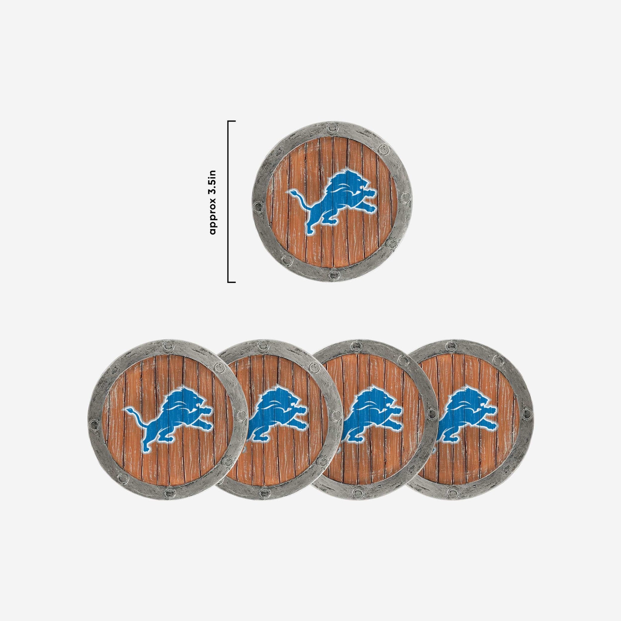 Championship rings? Yay! Unsightly rings on the coffee table? Boo! Break out the beverages worry-free and get ready for every watch party with this Detroit Lions 5 Pack Barrel Coaster Set.