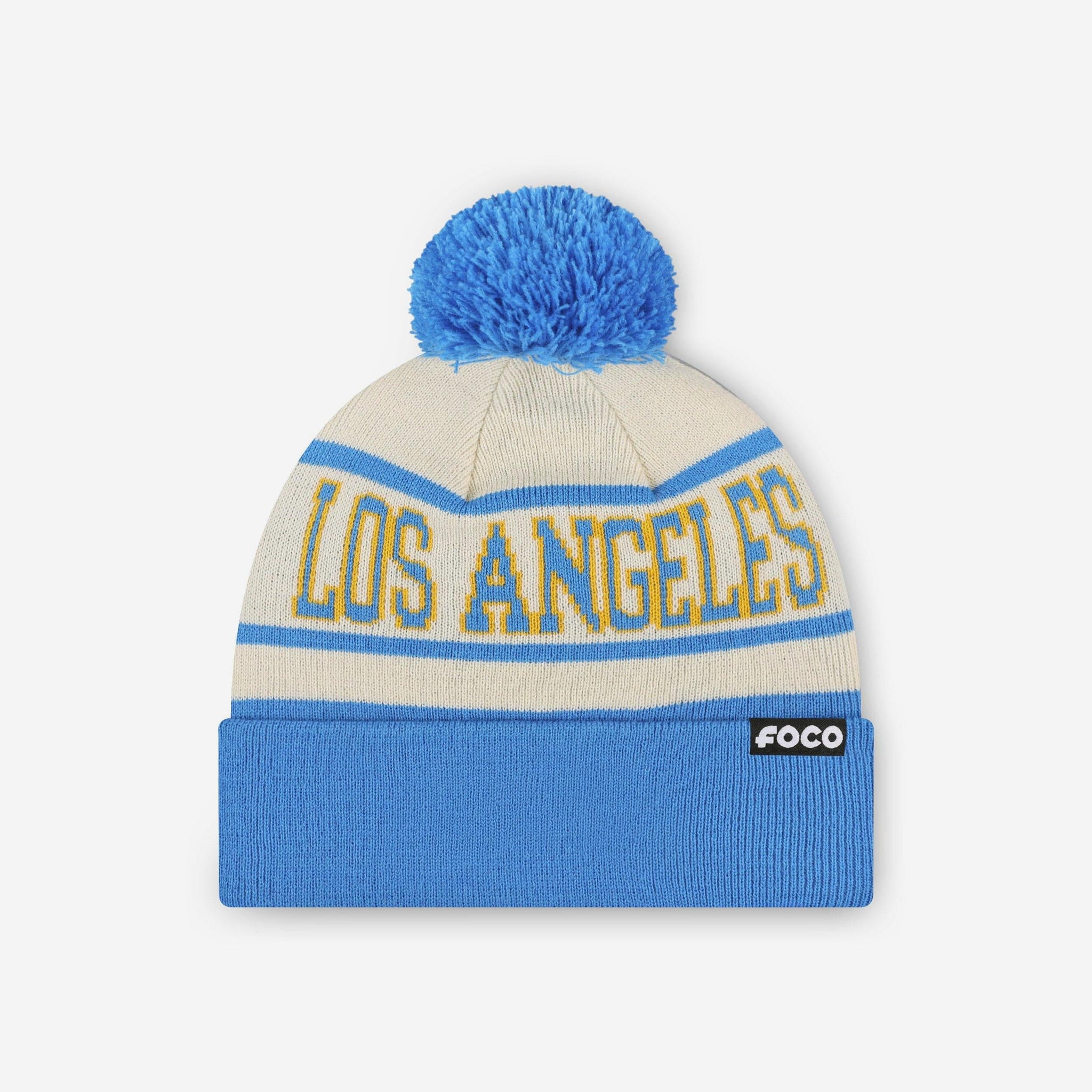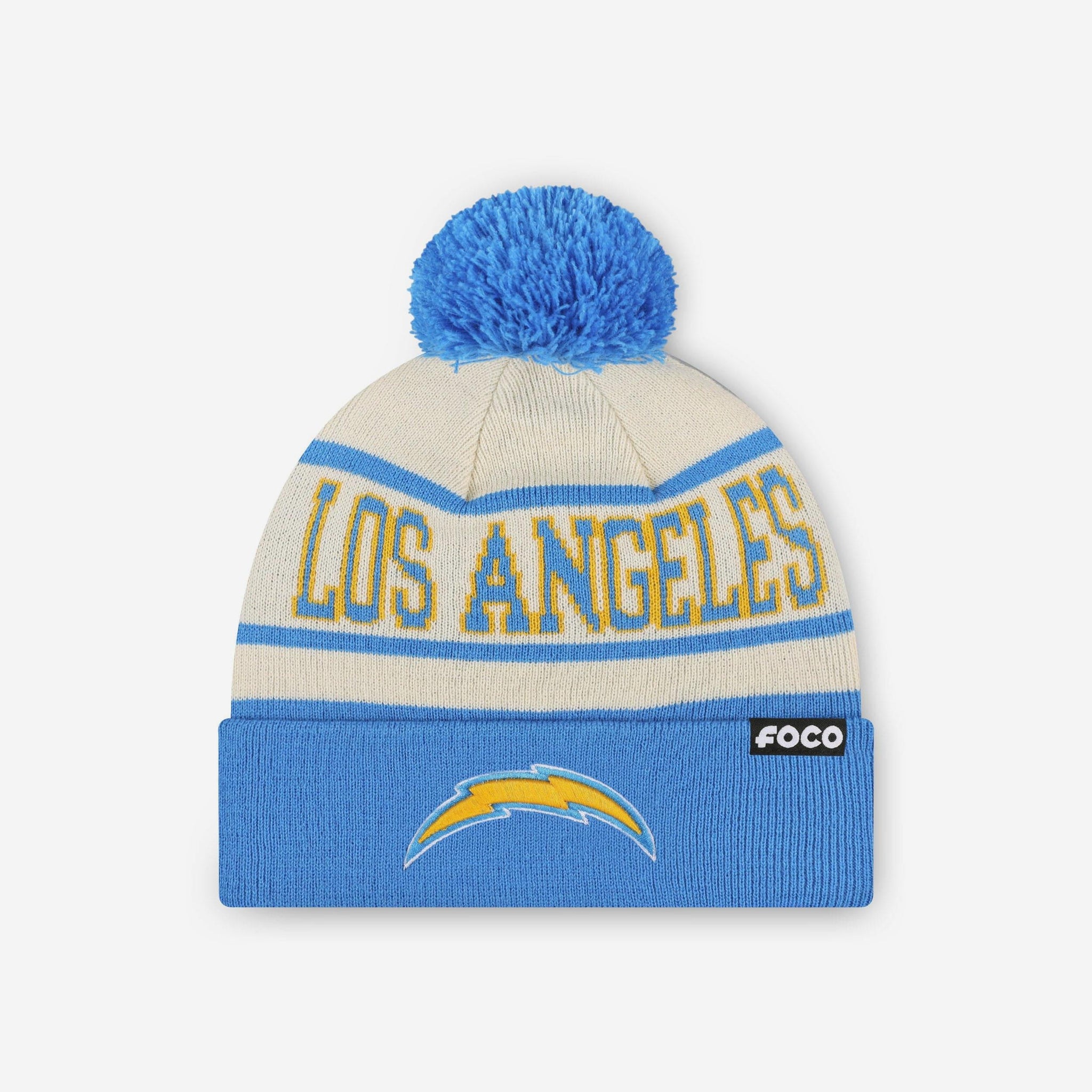 Los Angeles Chargers Heritage Stripe Primary Logo Pom Beanie FOCO - FOCO.com