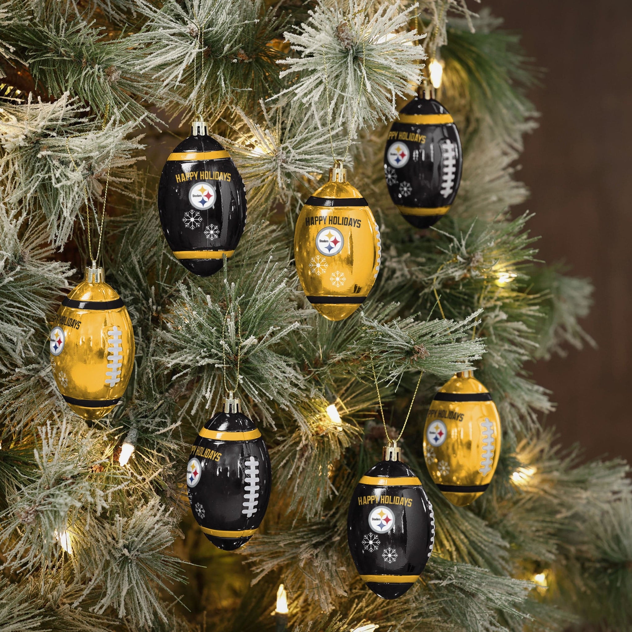 Your tree. Your team. And a holiday full of fandom! You’ll be ready to deck the halls with gridiron glory with the Pittsburgh Steelers 12 Pack Football Ornament Set.
