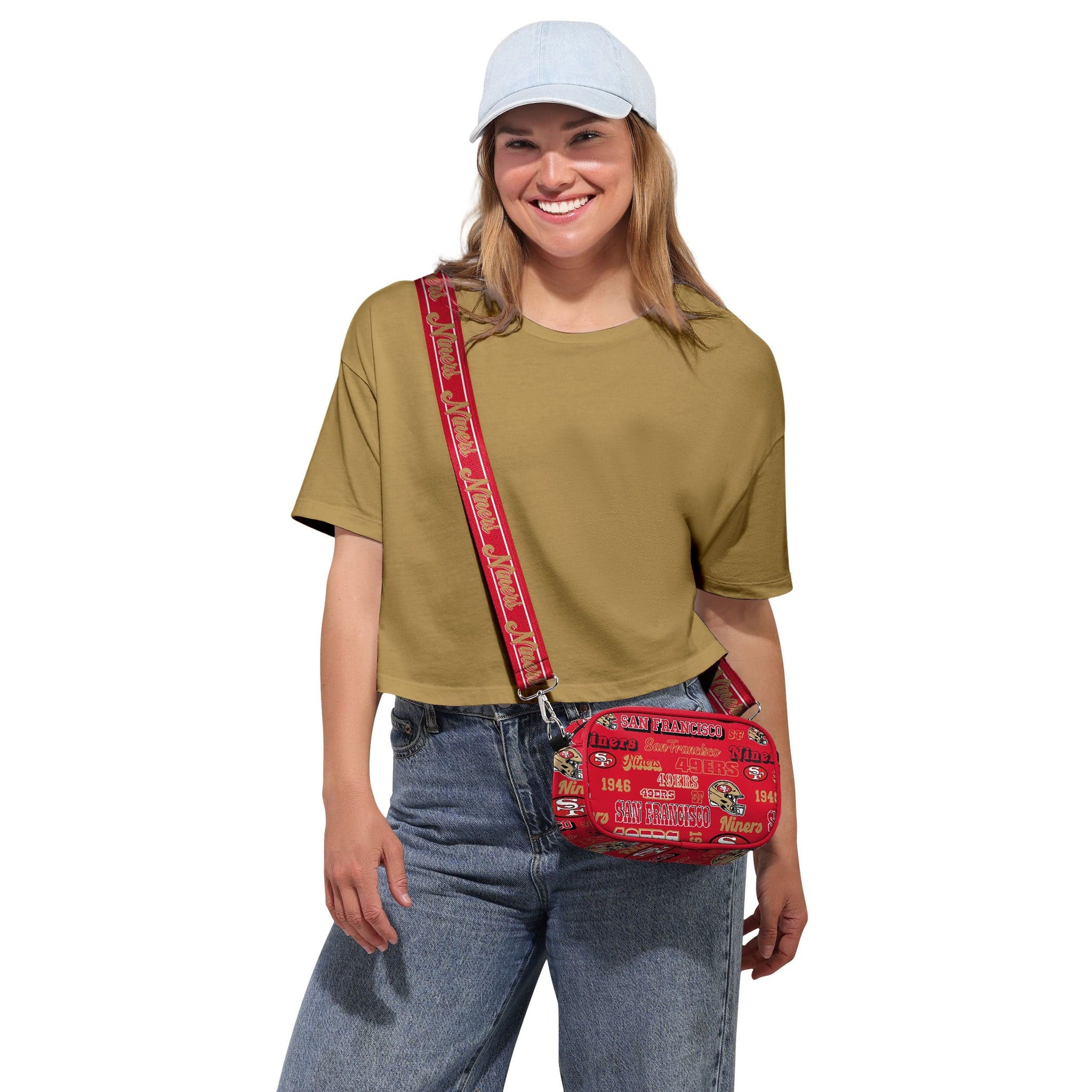 Over your shoulder and off to the game! Vintage vibes meet modern utility with the San Francisco 49ers Repeat Retro Print Nylon Crossbody Bag.