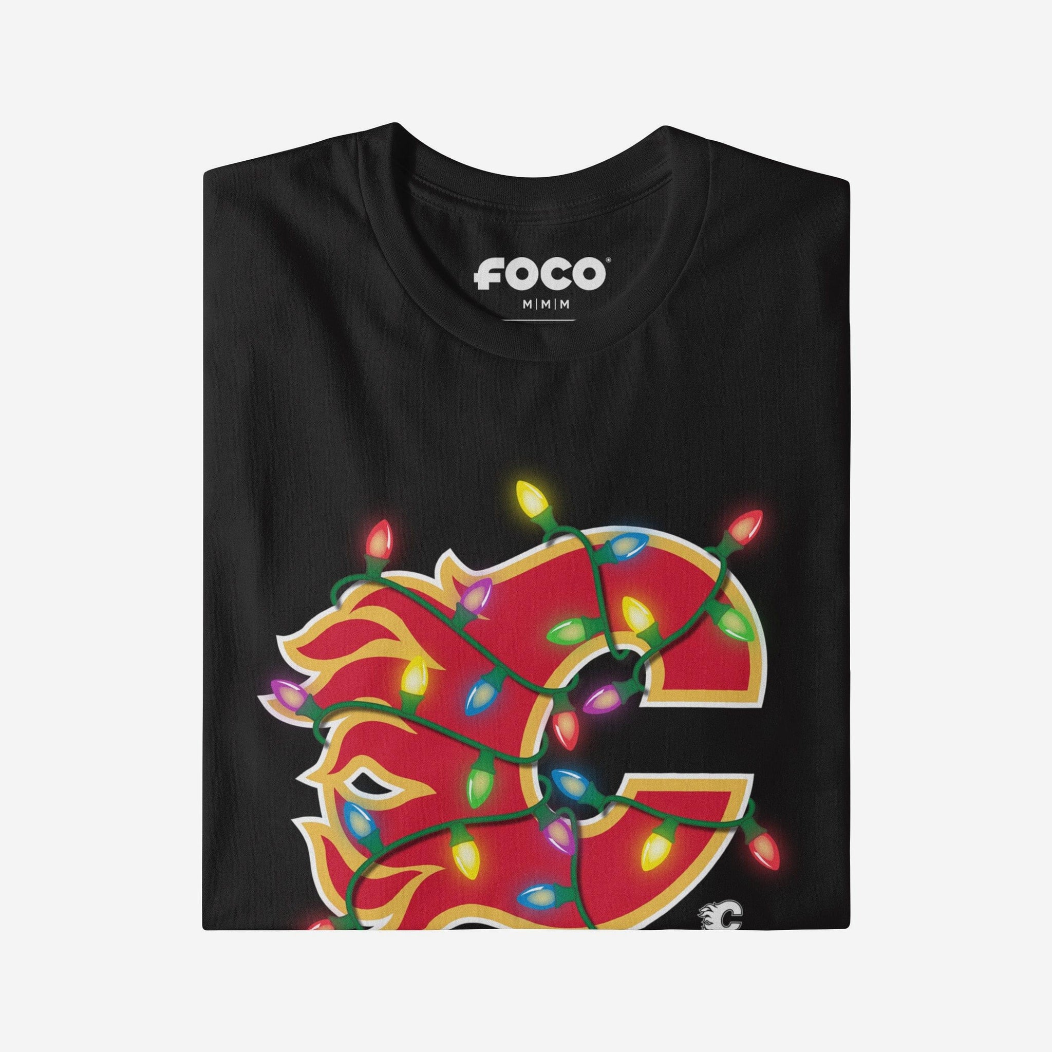 Calgary Flames Primary Logo Holiday Lights T-Shirt FOCO S - FOCO.com