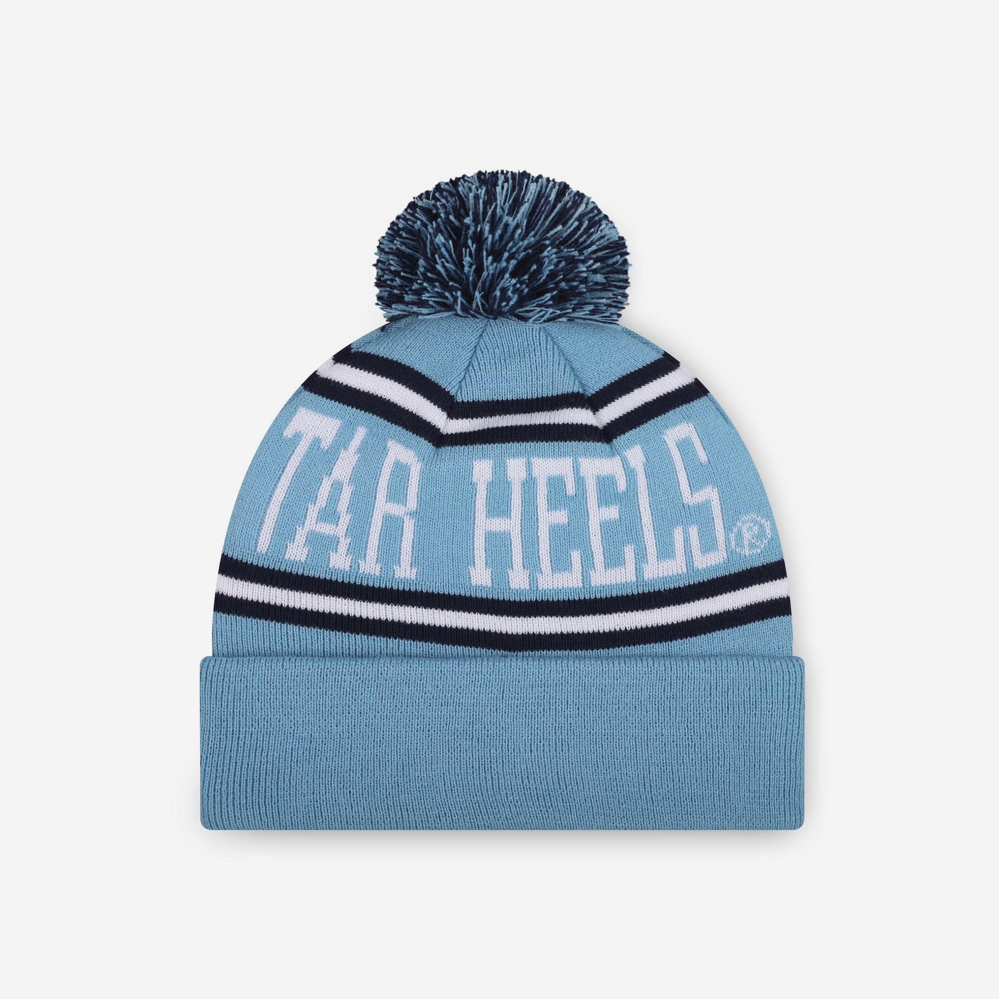 Heads up! This North Carolina Tar Heels Primary Logo Stripe Pom Beanie is so cozy, you might not want to take it off at all this winter.