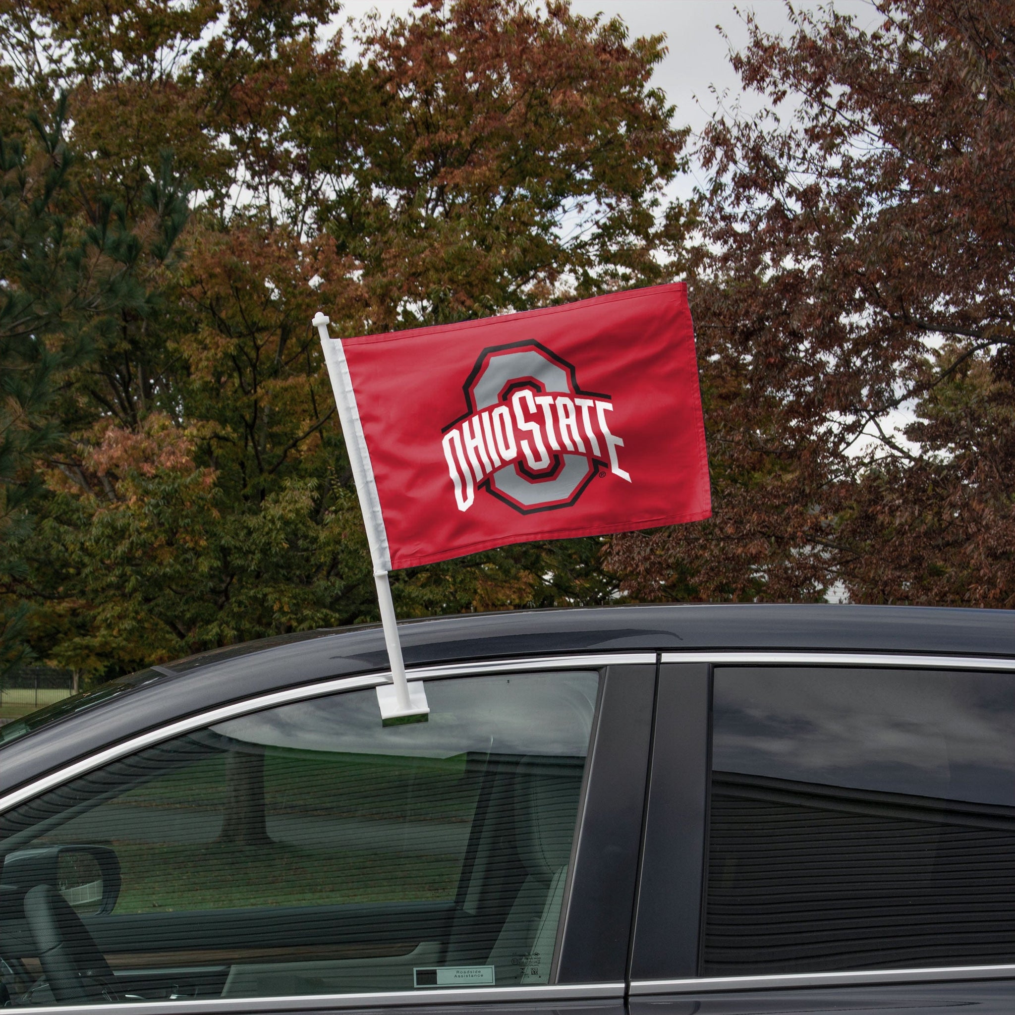 Ready, set, decorate! Start your engines and get ready to hit the road with your legendary team spirit by displaying this Ohio State Buckeyes 2 Pack Solid Car Flag!