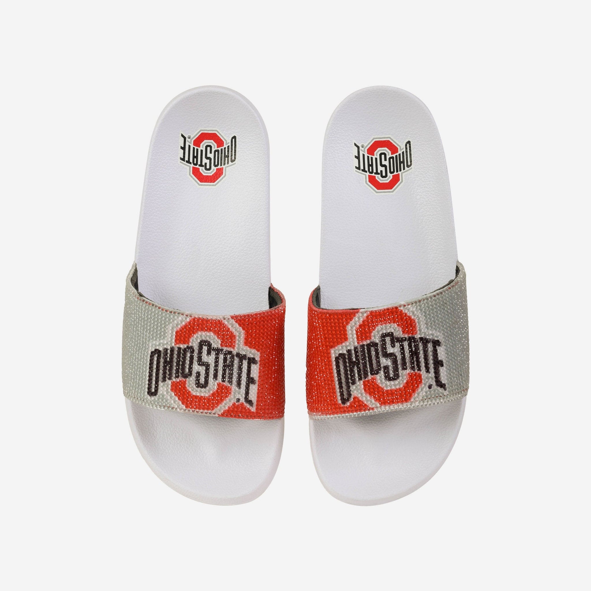 These Ohio State Buckeyes Women's Big Logo Shimmer Slides are the jewel of fresh fan footwear! Let your team spirit shine like a beacon of awesome!