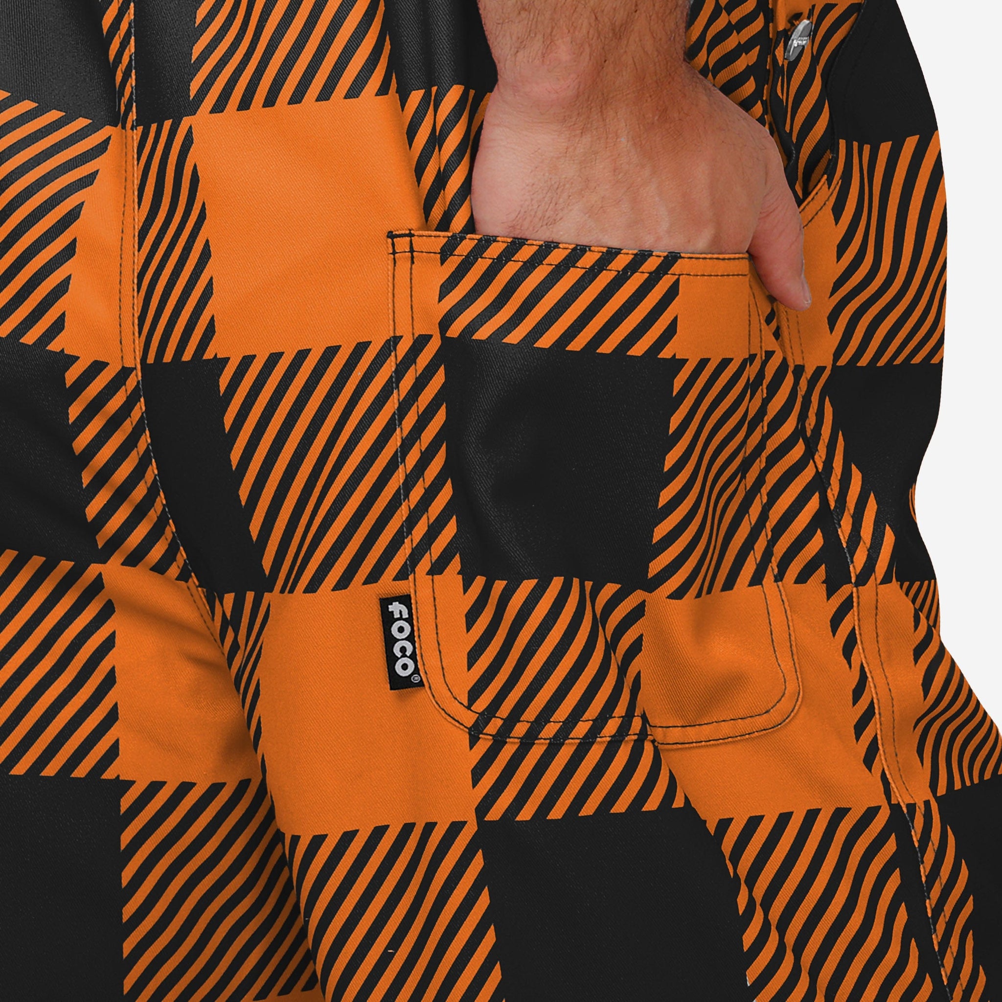 The bib pocket is perfect for storing your phone, wallet, or other essentials, and the adjustable bib shoulder straps ensure a comfortable fit. Two back pockets provide even more storage space. These overalls are made of sturdy and functional woven polyester canvas that is lightweight and breathable. They are long enough to provide coverage and durability, so you can focus on cheering on your team without worrying about your outfit. Just don't be surprised if a fellow fan asks for some help chopping wood when they see you in this epic lumberjack style.