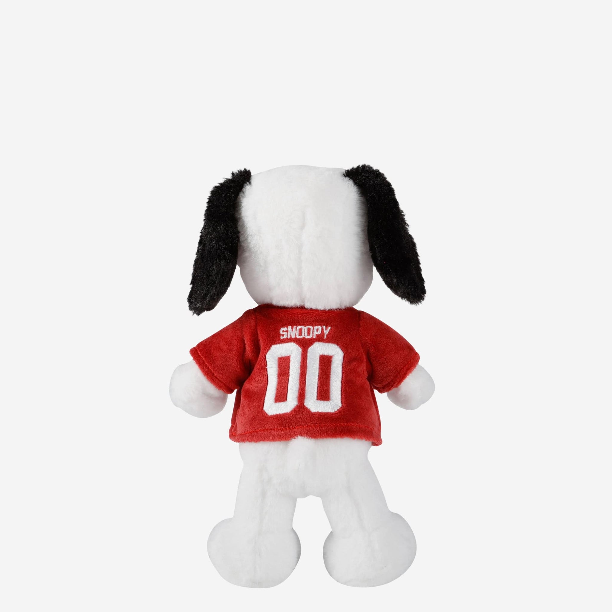 • Plush Snoopy sporting a team-colored jersey with a team logo display