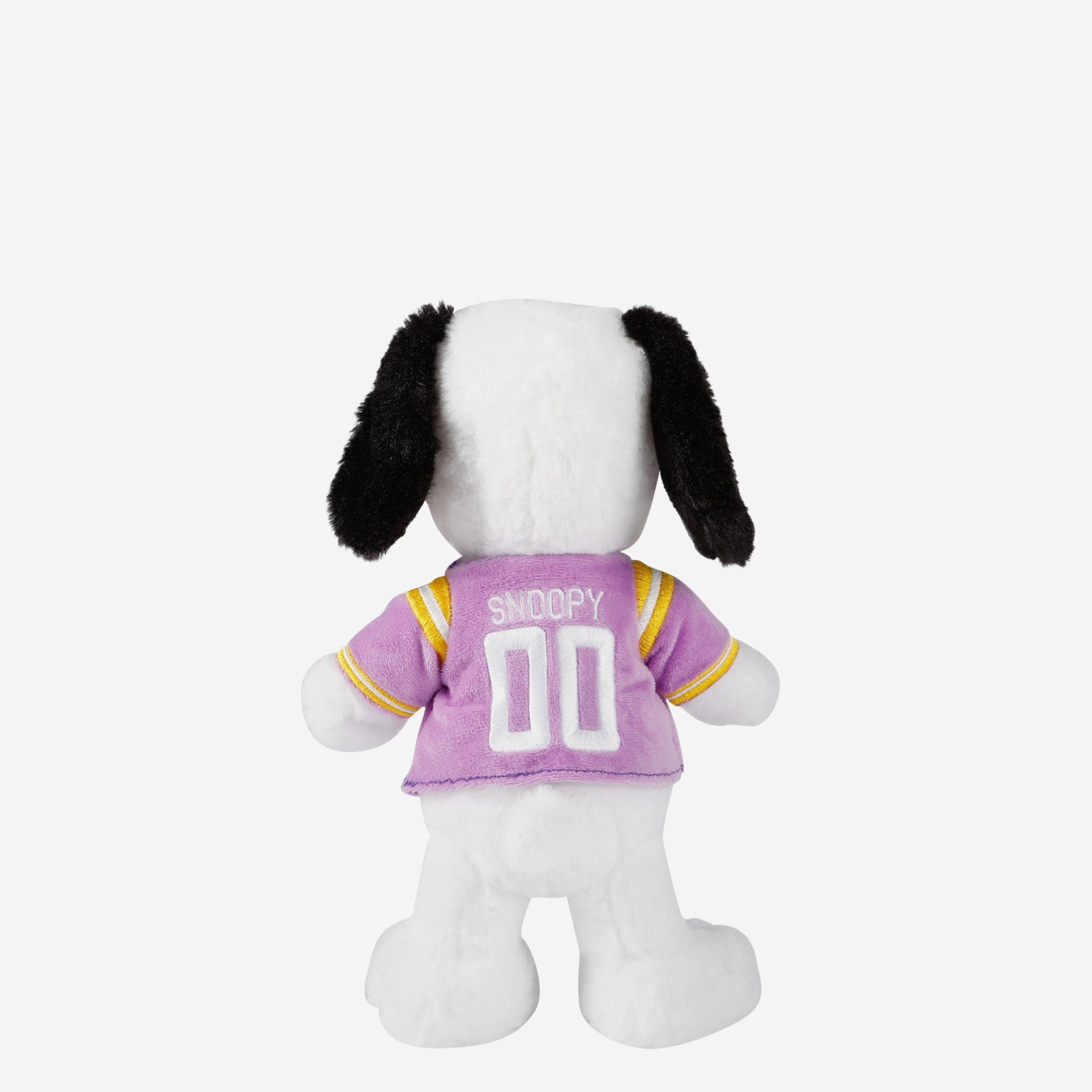 - Plush Snoopy sporting a team-colored jersey with a team logo display