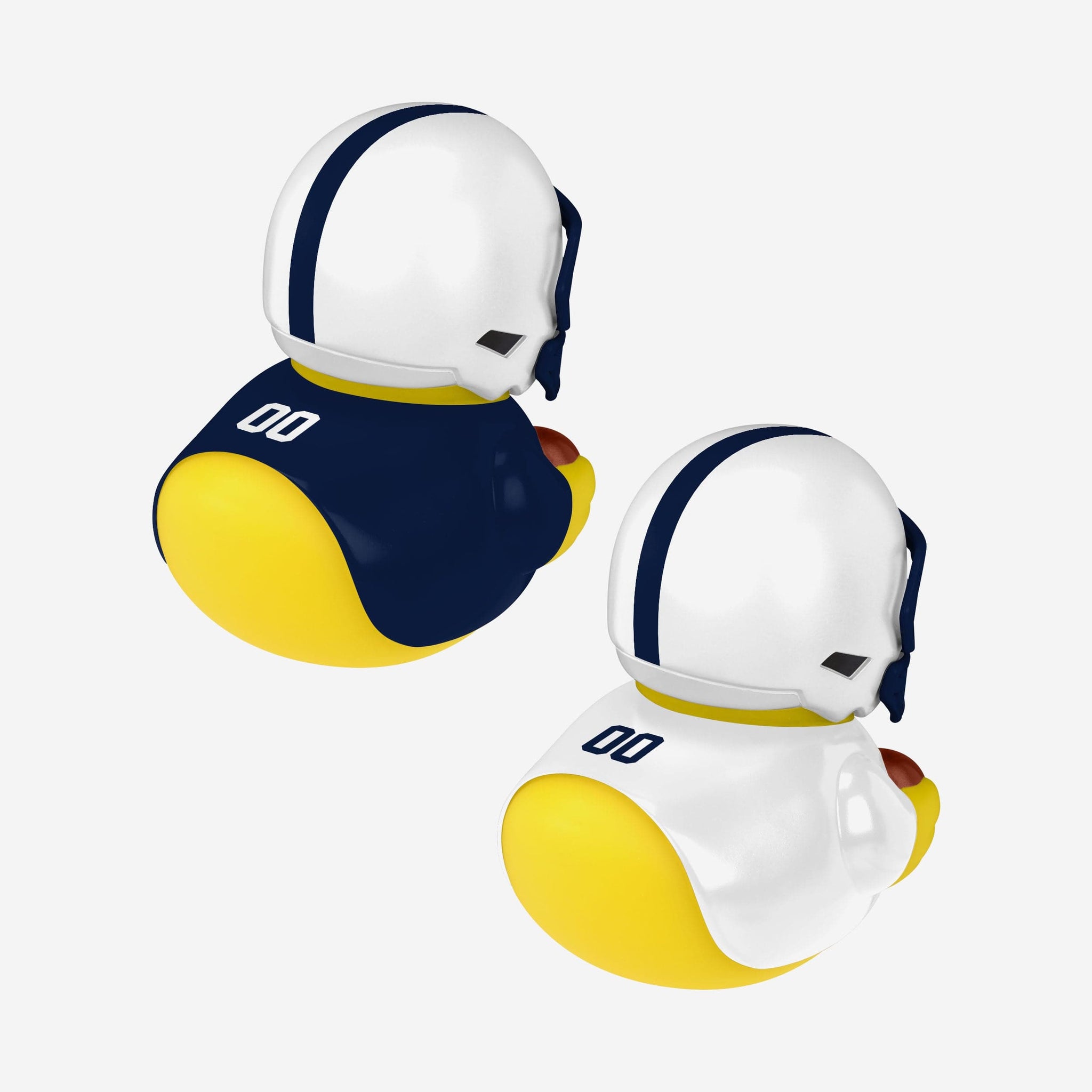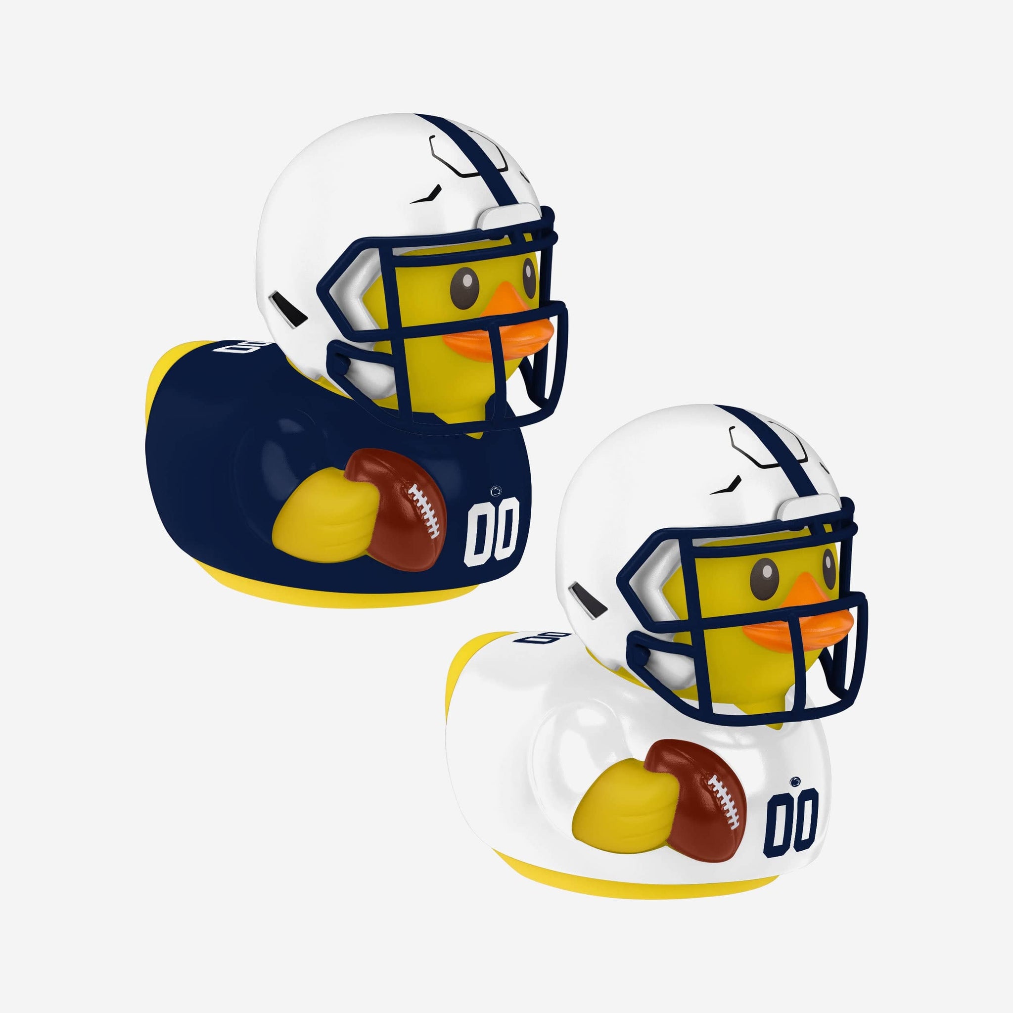 - Two-pack of yellow rubber ducks wearing home and away gameday uniforms for a double dose of greatness