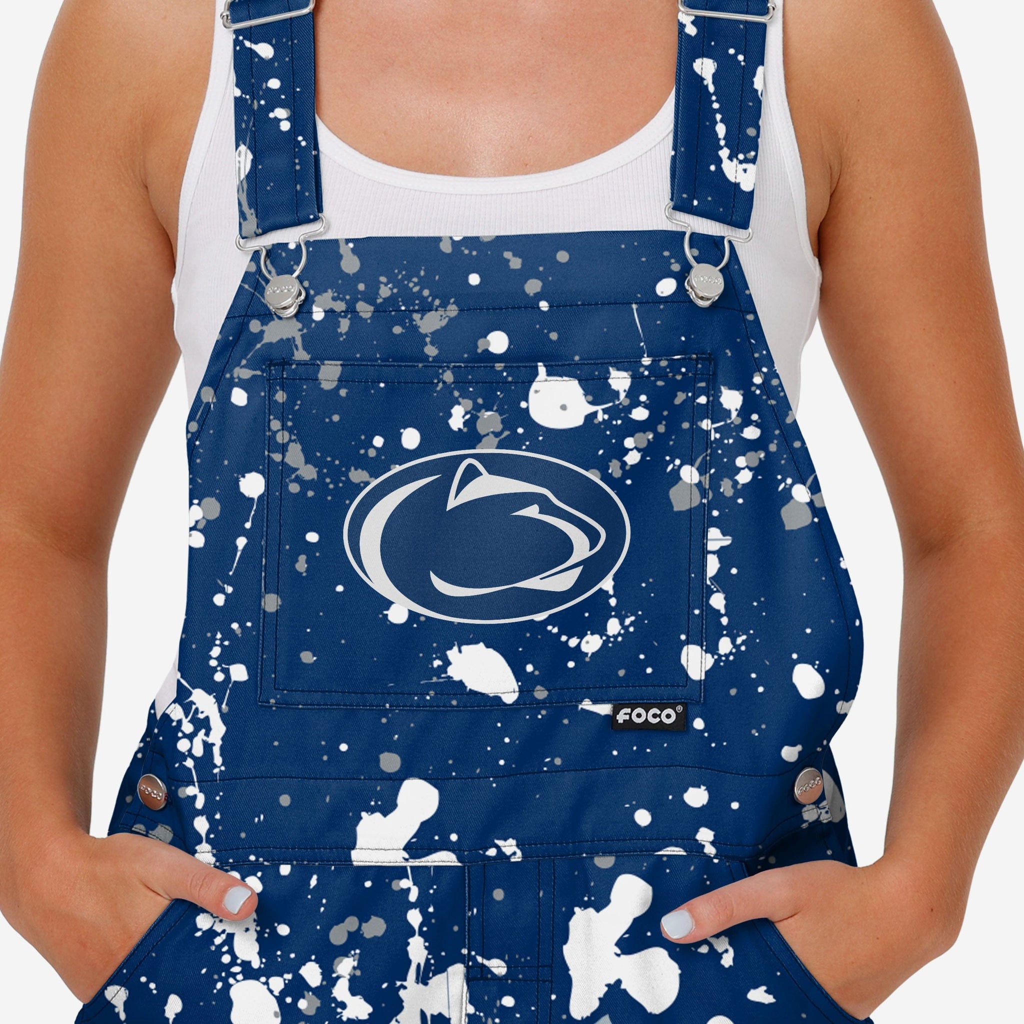 Show your team spirit in these stylish and comfortable Penn State Nittany Lions Women's Paint Splatter Bib Overalls. With their all-over team-colored design and bold team logo display, these overalls are the perfect way to show your support for the Penn State Nittany Lions while reminding everyone that your fandom is a masterpiece that even history’s greatest artists would bask in the glory of.