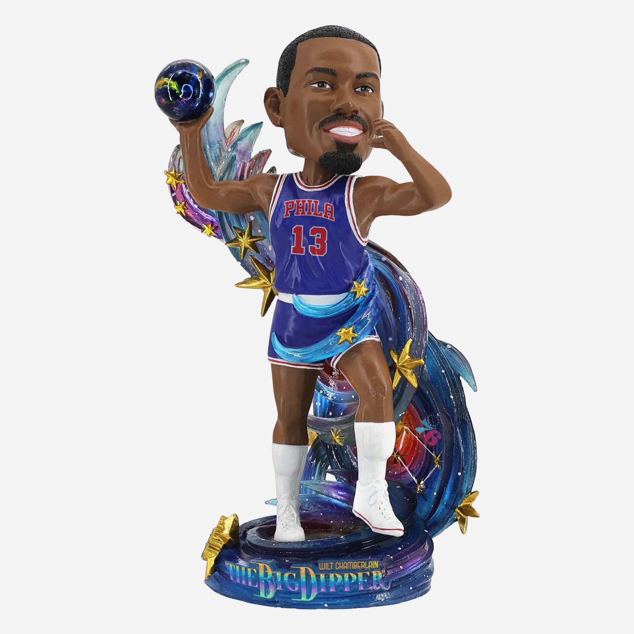 Reach for the stars with The Big Dipper! Make a cosmic slam dunk for your collection with this Wilt Chamberlain Philadelphia 76ers Nickname Bobblehead.