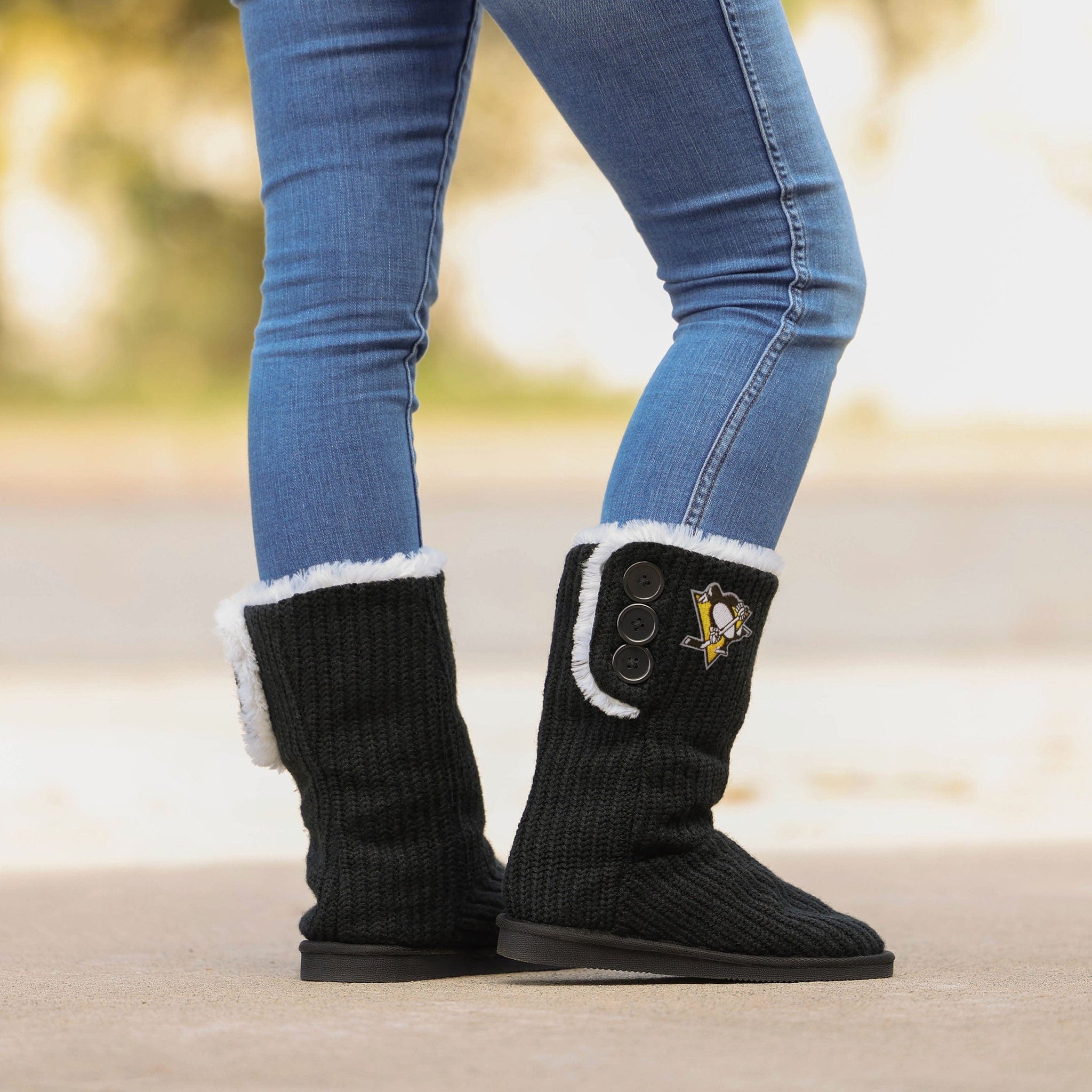 These Pittsburgh Penguins Knit High End Button Boot Slippers are perfect for rocking your team spirit from head to toe, or keeping yourself warm and comfortable while you sneak downstairs for that secret midnight snack. No judgment here.