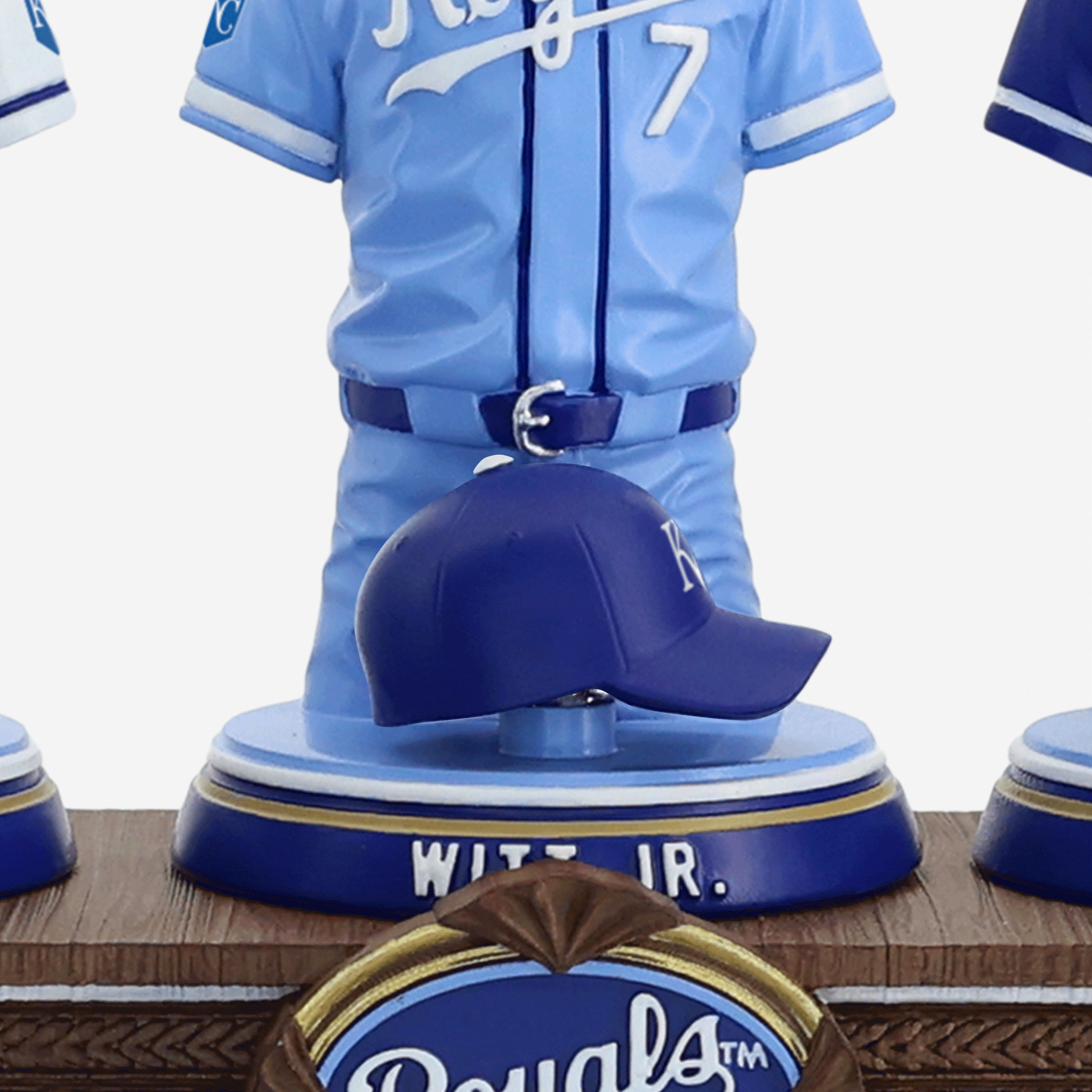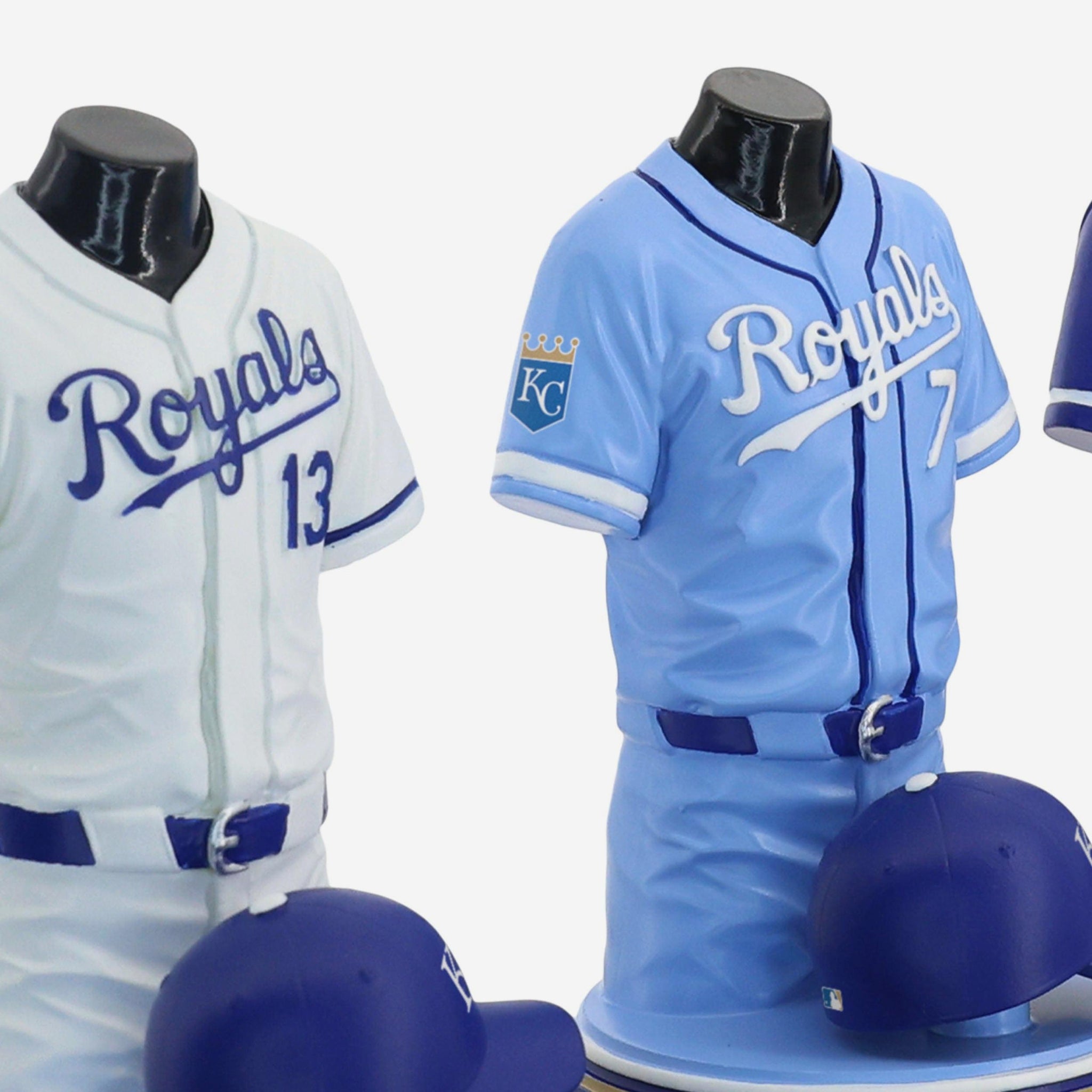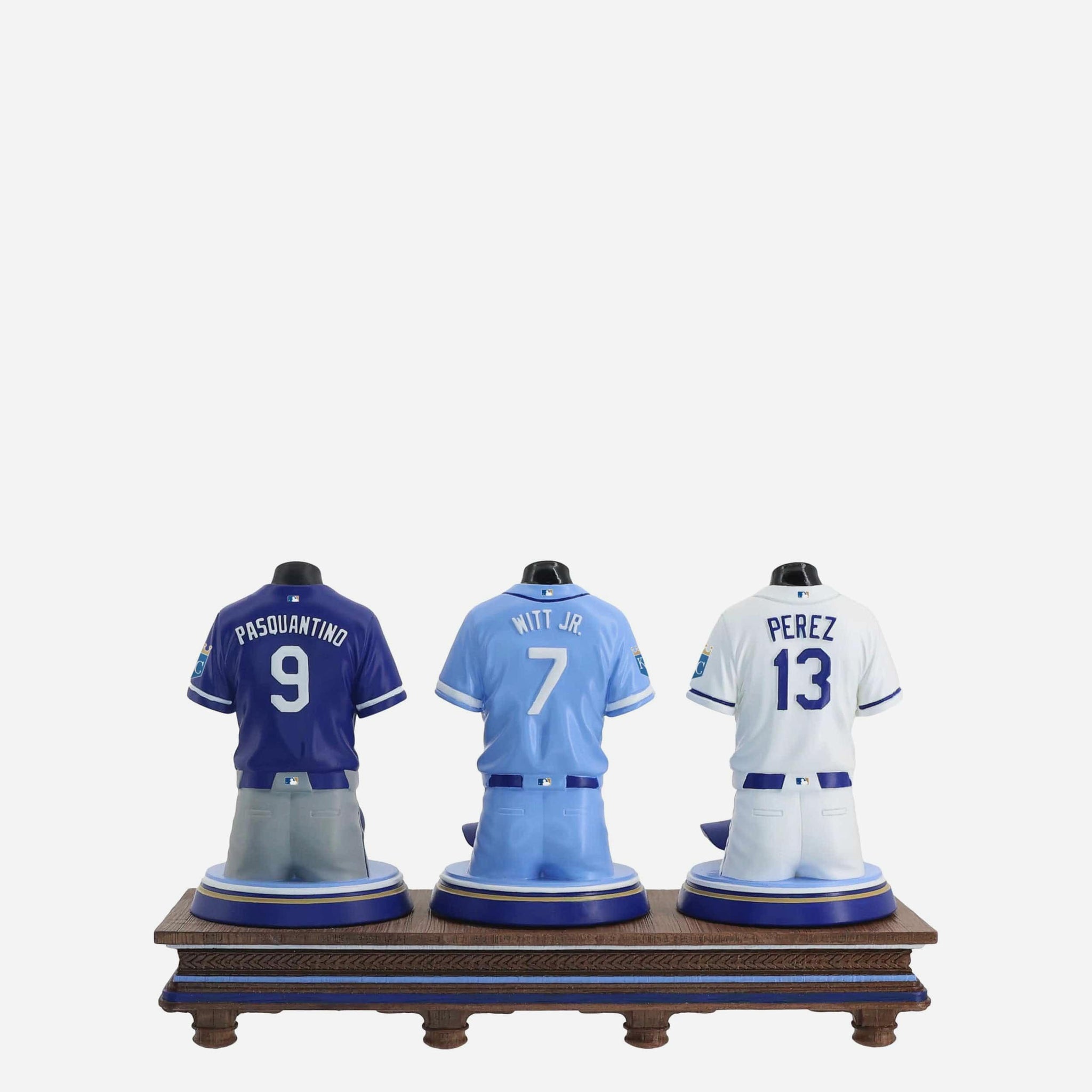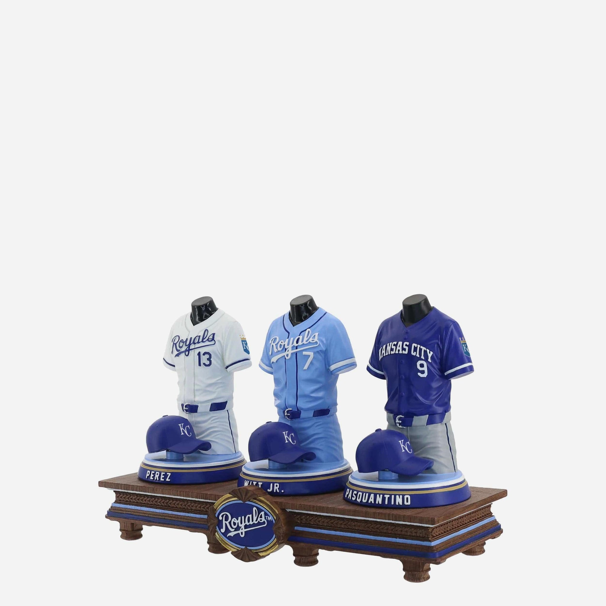 - Portrays Bobby Witt Jr, Salvador Perez, and Vinnie Pasquantino player jersey busts with matching caps, combining for one epic display of team spirit