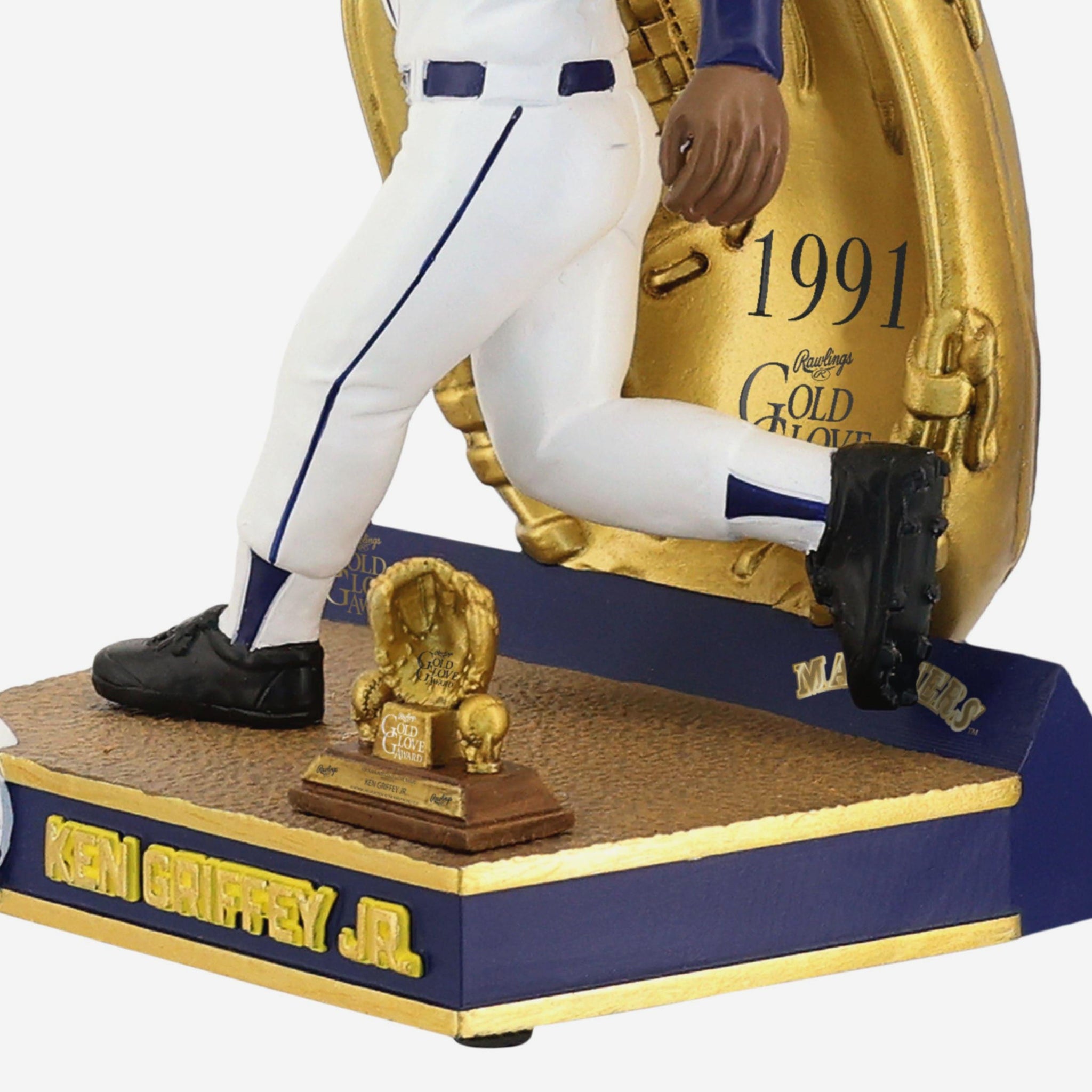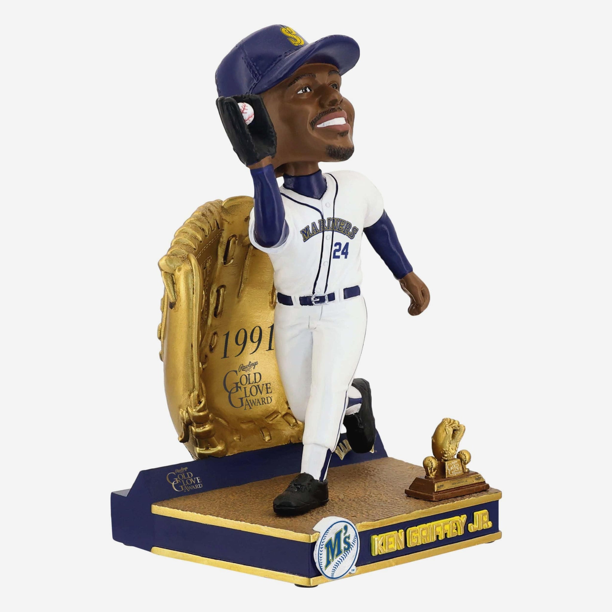 Style, range, and a glove built for highlights. Celebrate defensive greatness with this Ken Griffey Jr Seattle Mariners 1991 Gold Glove Bobblehead.