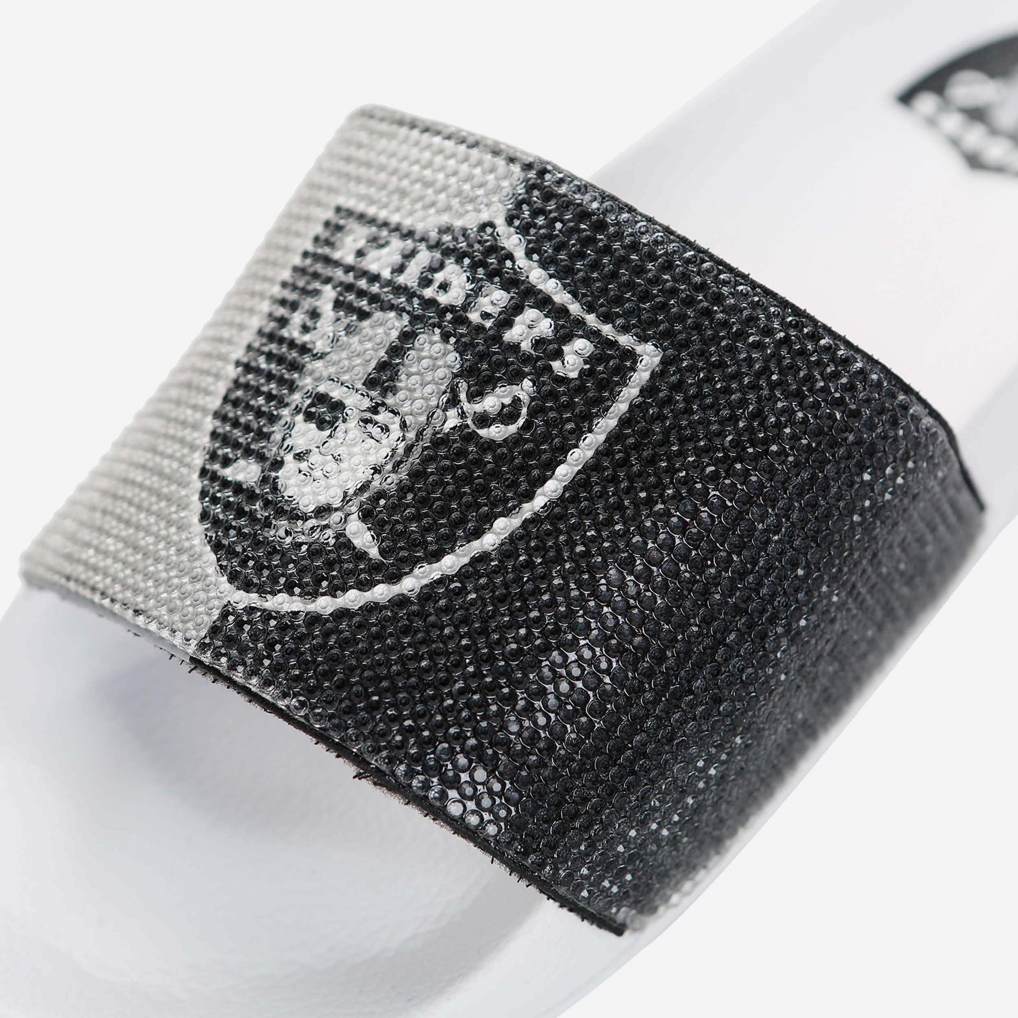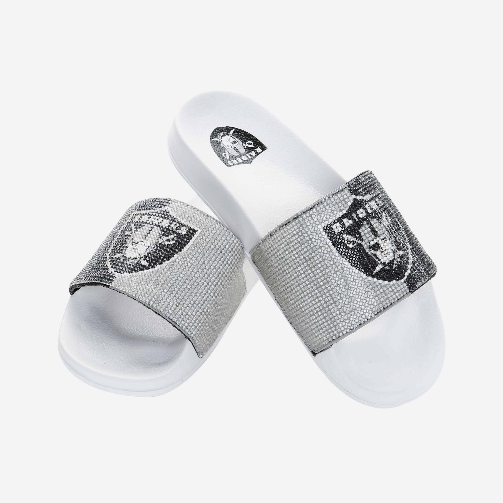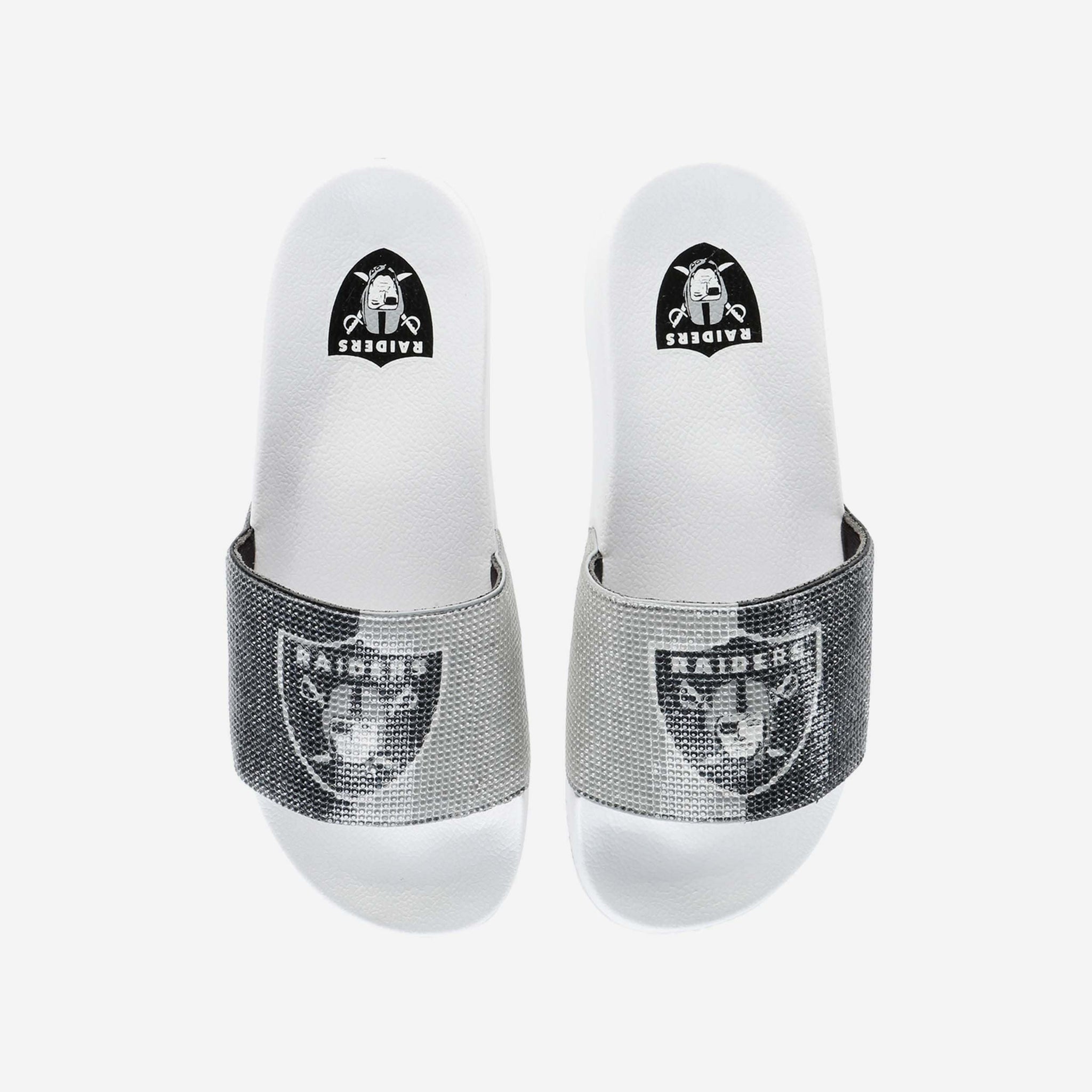 These Las Vegas Raiders Women's Big Logo Shimmer Slides are the jewel of fresh fan footwear! Let your team spirit shine like a beacon of awesome!
