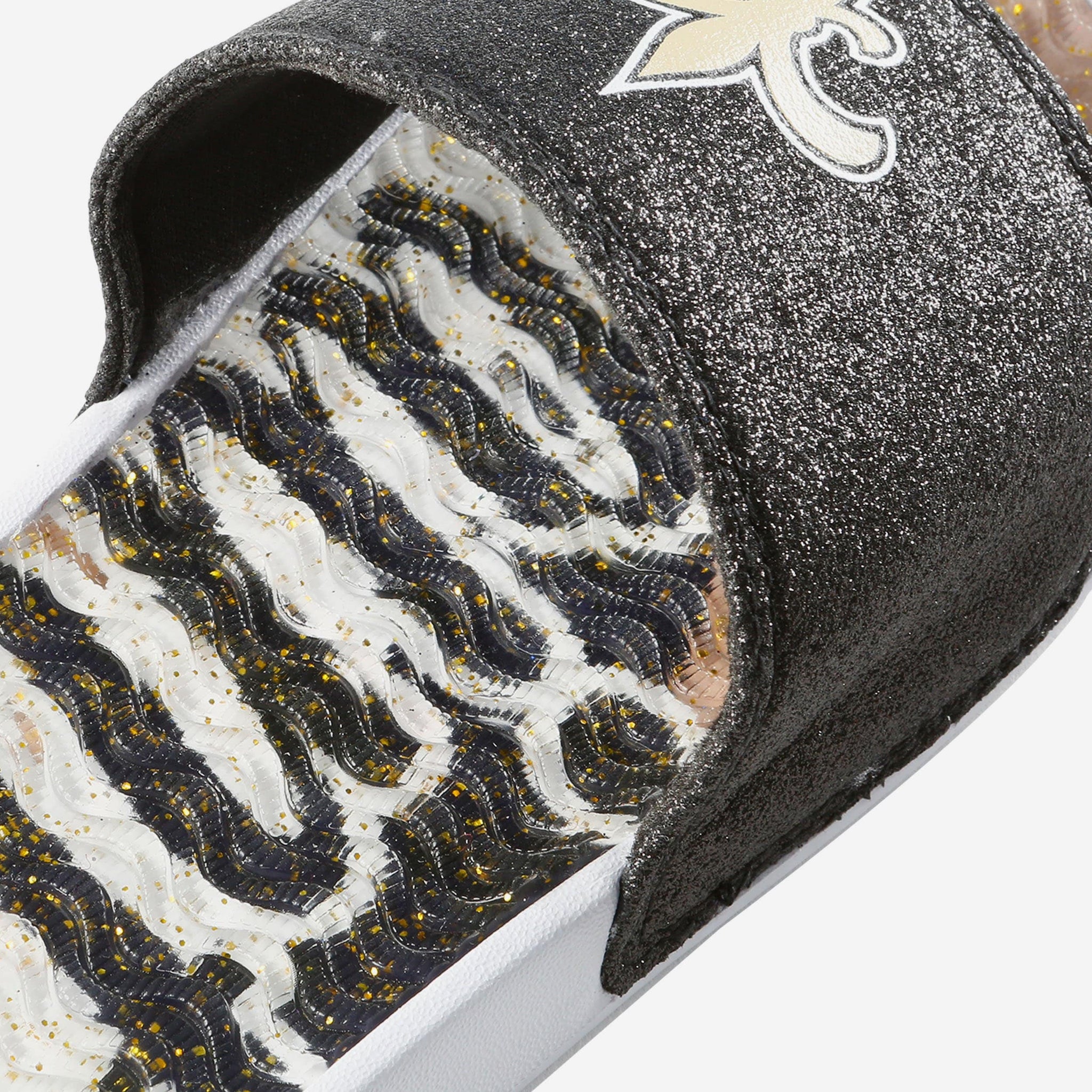 Fan footwear that will make you the pick of the glitter. Let your team spirit shine with every step in these New Orleans Saints Women's Glitter Gel Slides!