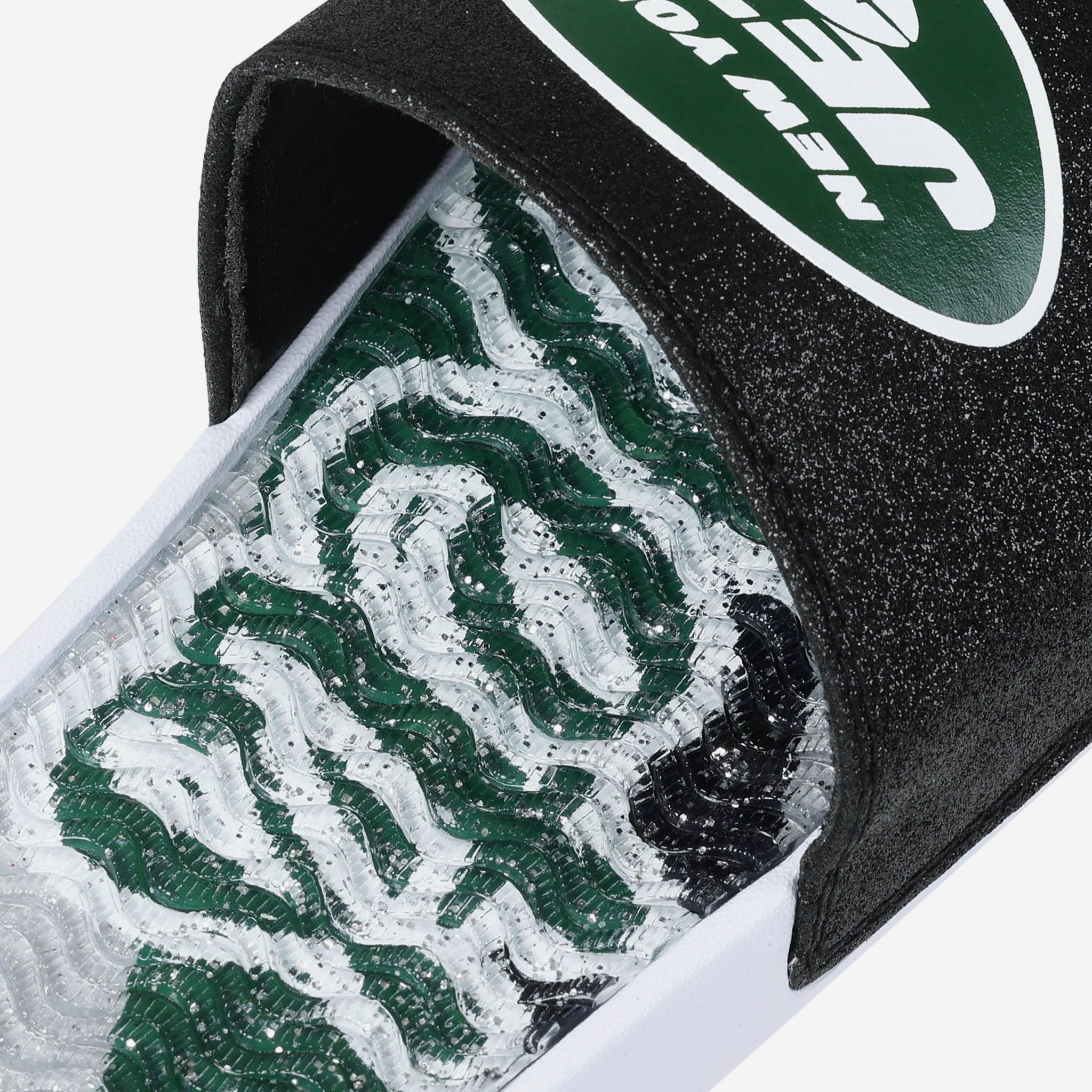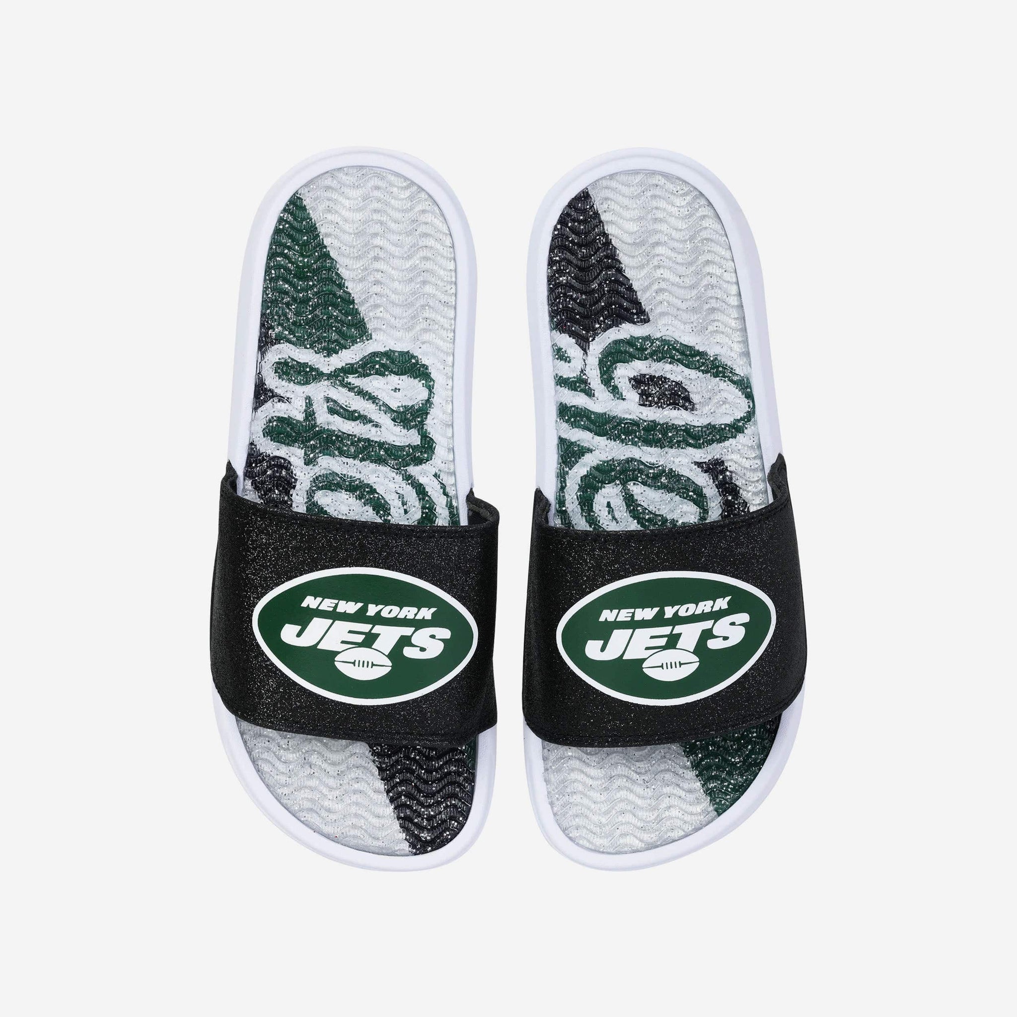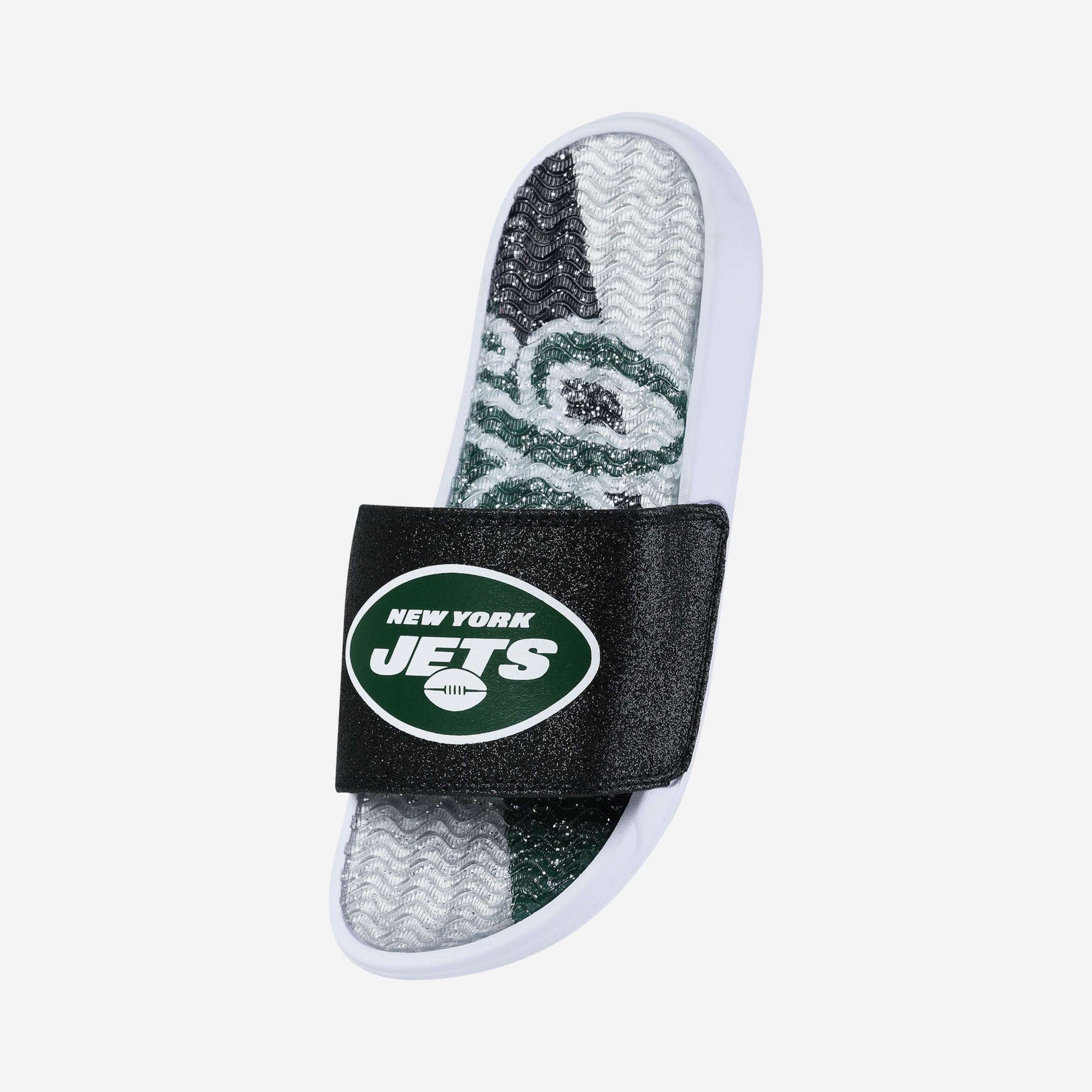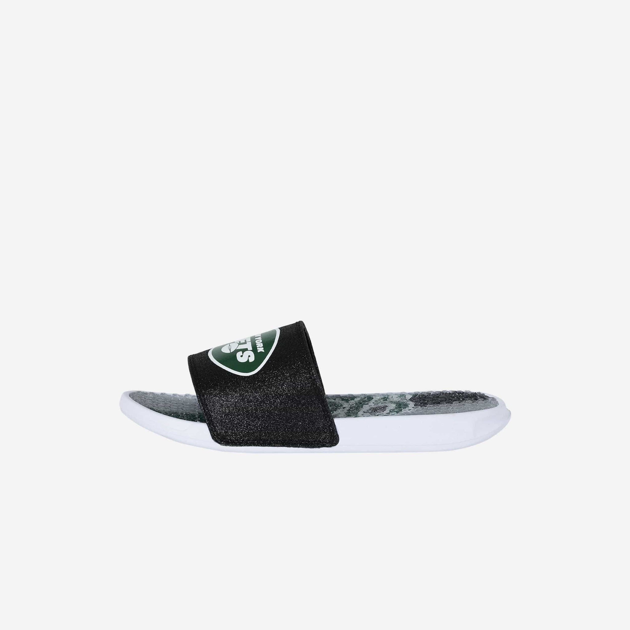Fan footwear that will make you the pick of the glitter. Let your team spirit shine with every step in these New York Jets Women's Glitter Gel Slides!