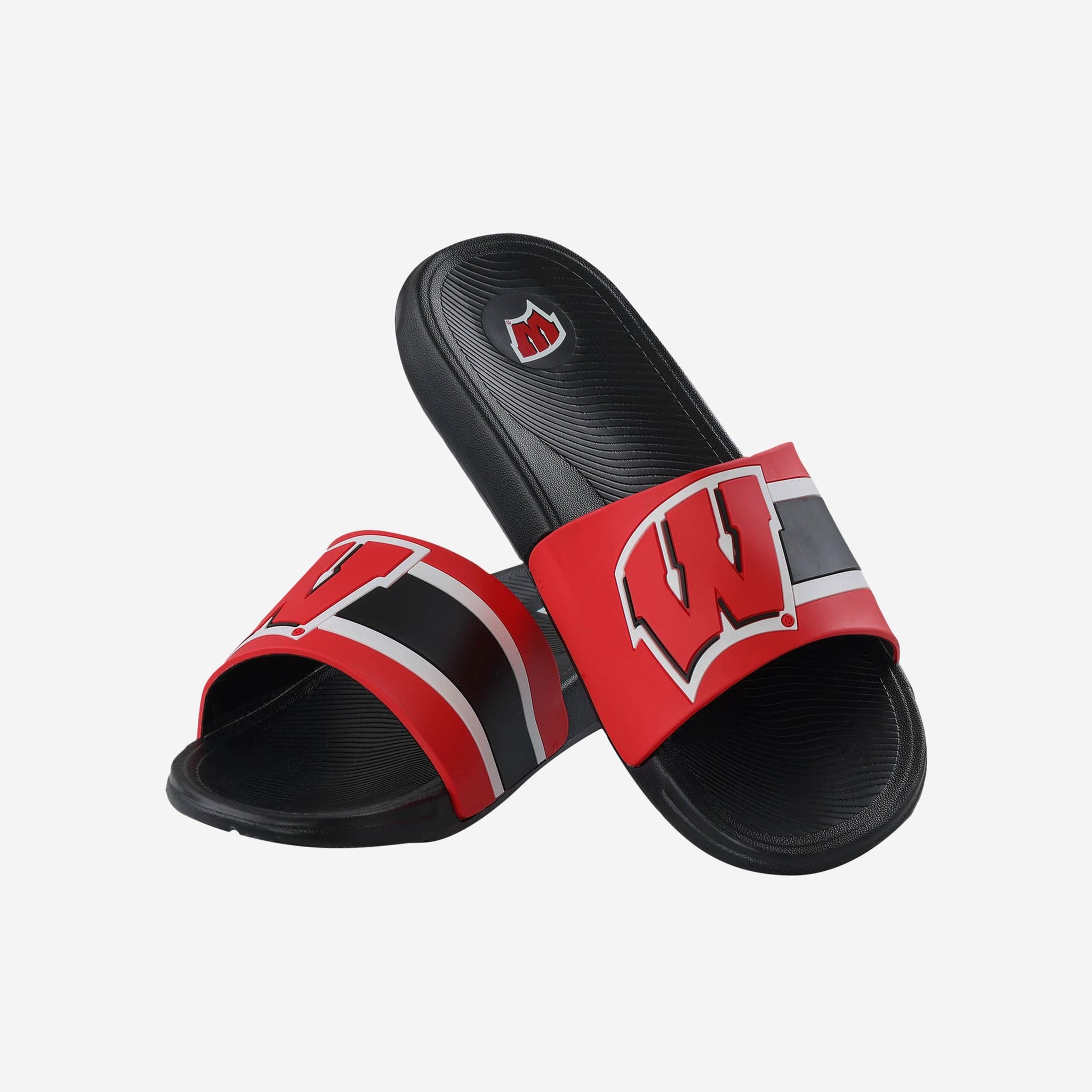 These Wisconsin Badgers Striped Big Logo Raised Slides give a whole new meaning to the idea of putting some pep in your step.