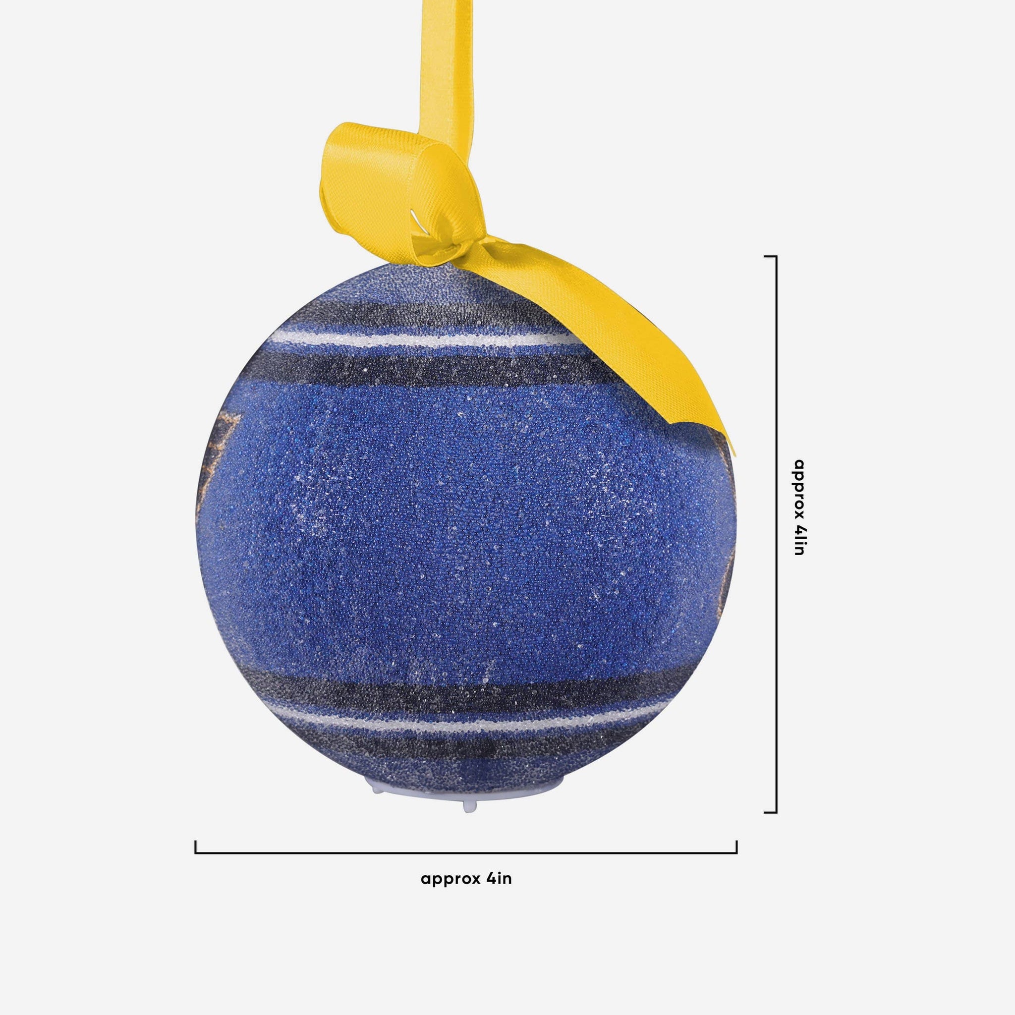 - Team-colored stripe accents on top and bottom of ornament to make your tree look extra awesome
