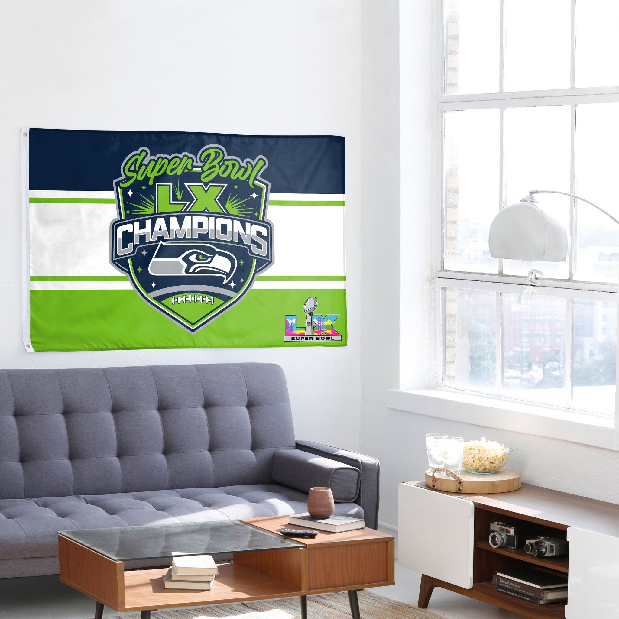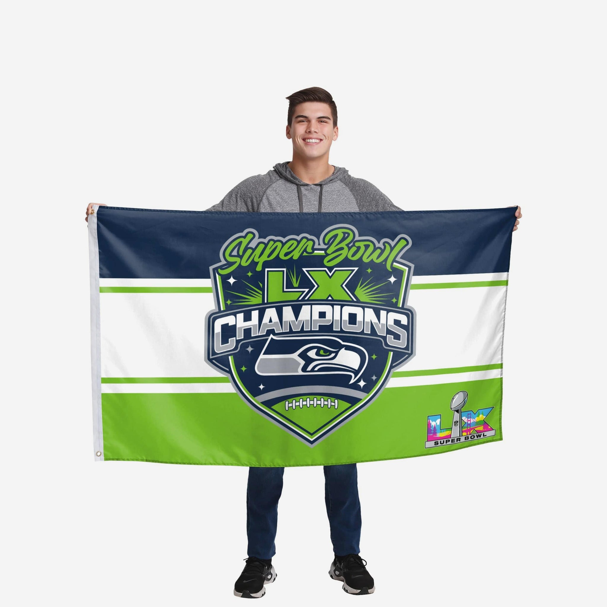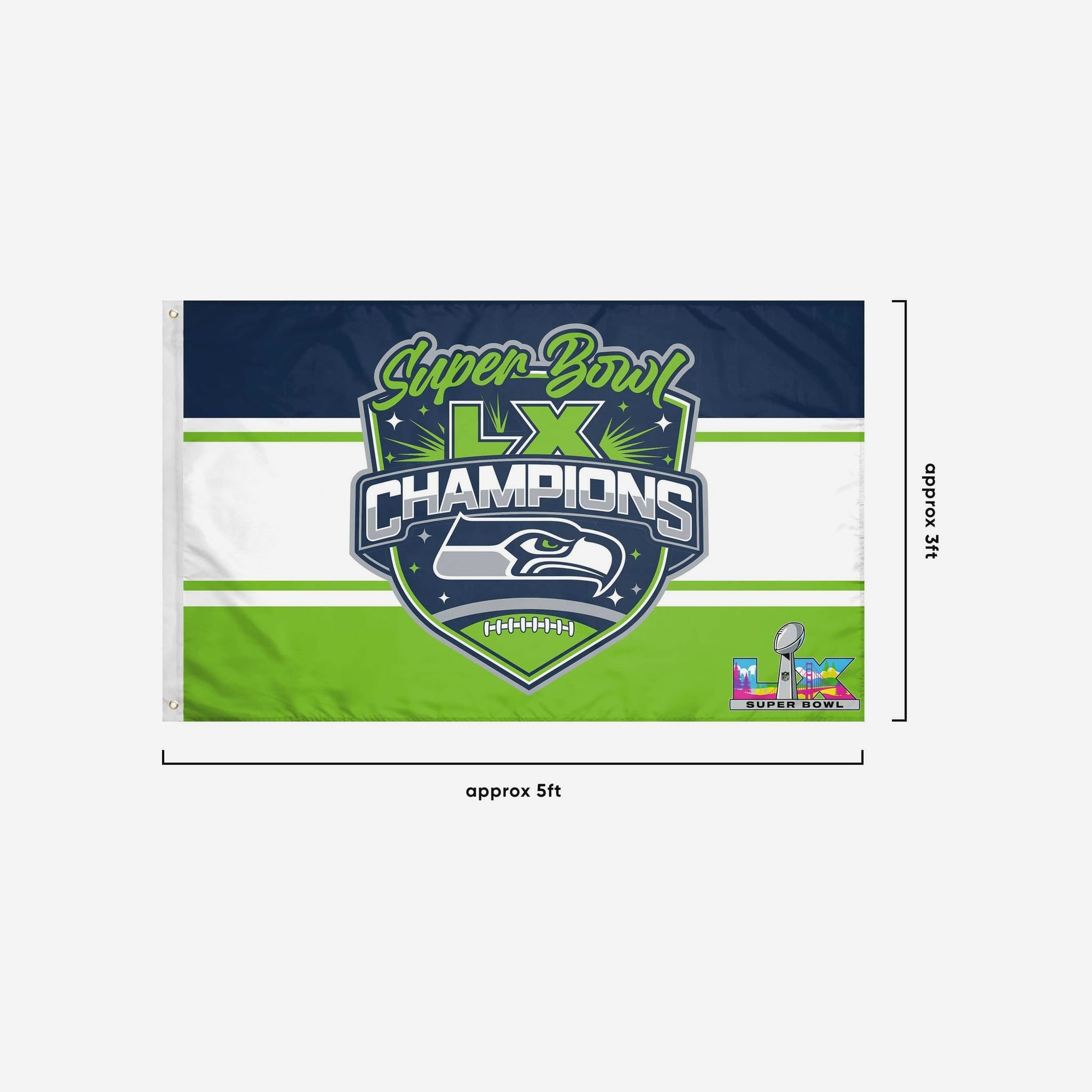 Rep the champs in the front yard, in your fancave, at the game, or wherever life takes you with this Seattle Seahawks Super Bowl LX Champions Horizontal Flag