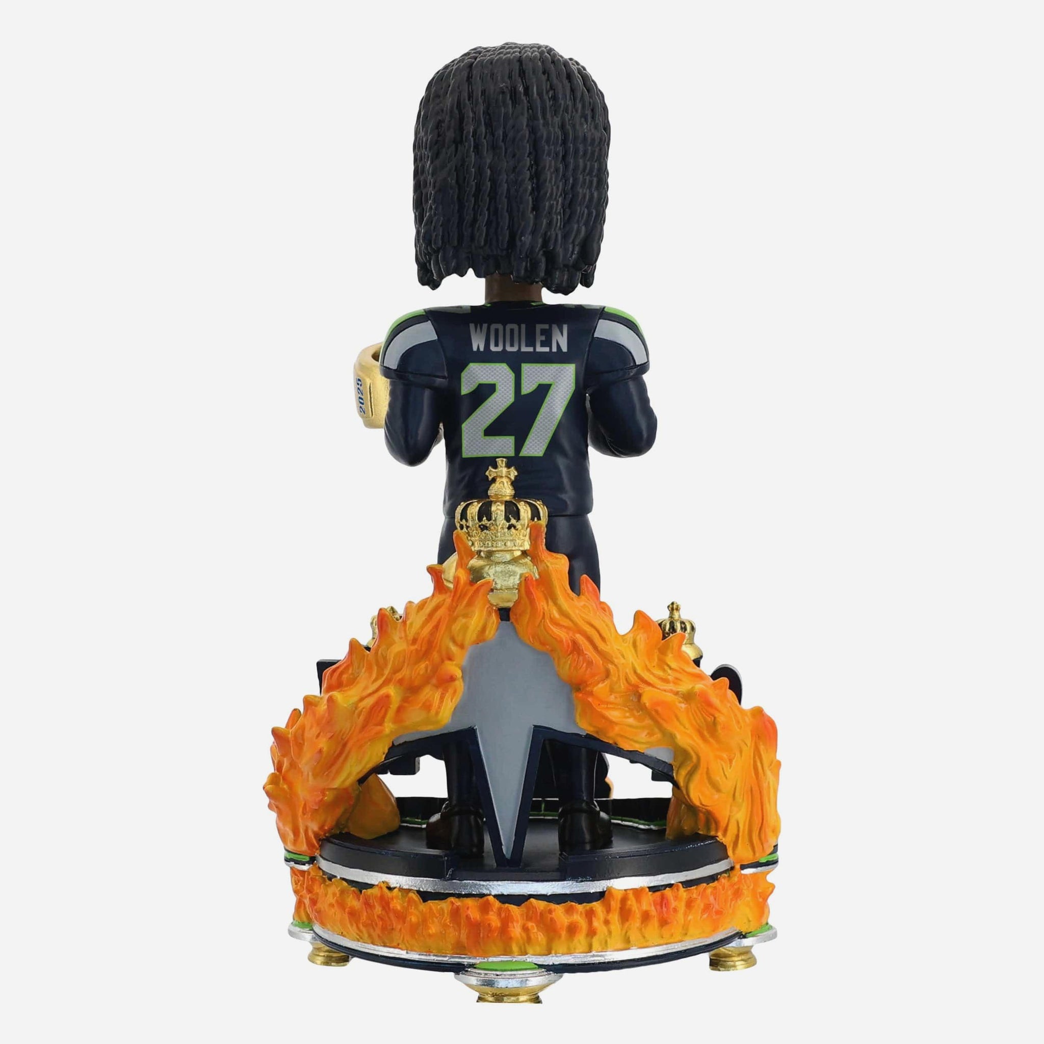 • Portrays Woolen wearing his Super Bowl LX gameday uniform in a triumphant championship celebration pose