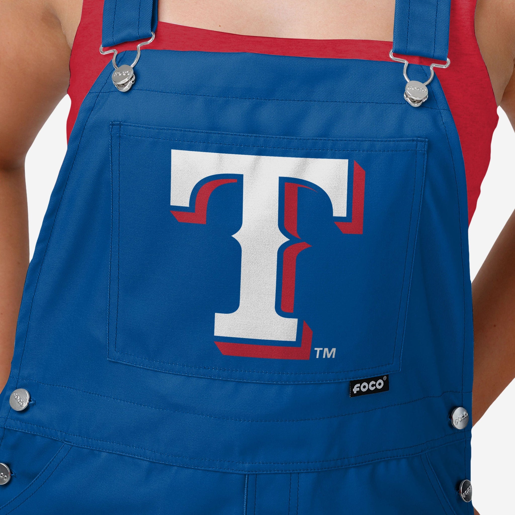 - All-over team-colored design: These overalls are covered in the official Texas Rangers colors, so you can show your team spirit with pride.