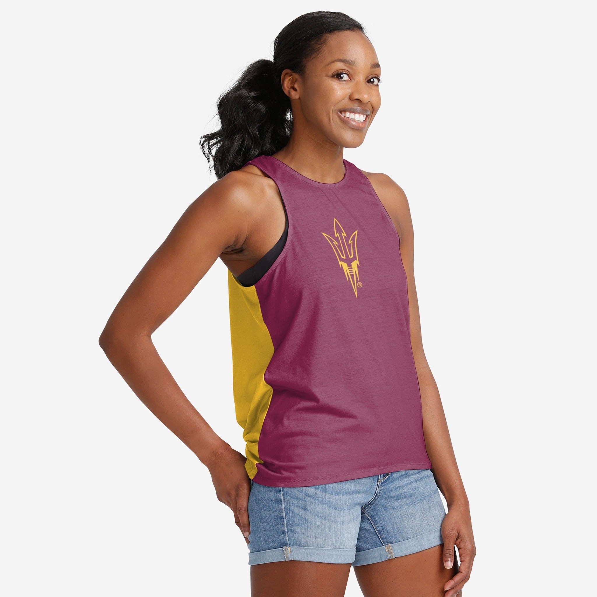 Fandom never looked so good. Whether you're at the game, hitting the beach, or getting your epic workout on at the gym, this Arizona State Sun Devils Women's Tie-Breaker Sleeveless Top is sure to make you the most passionate and best-dressed fan around.