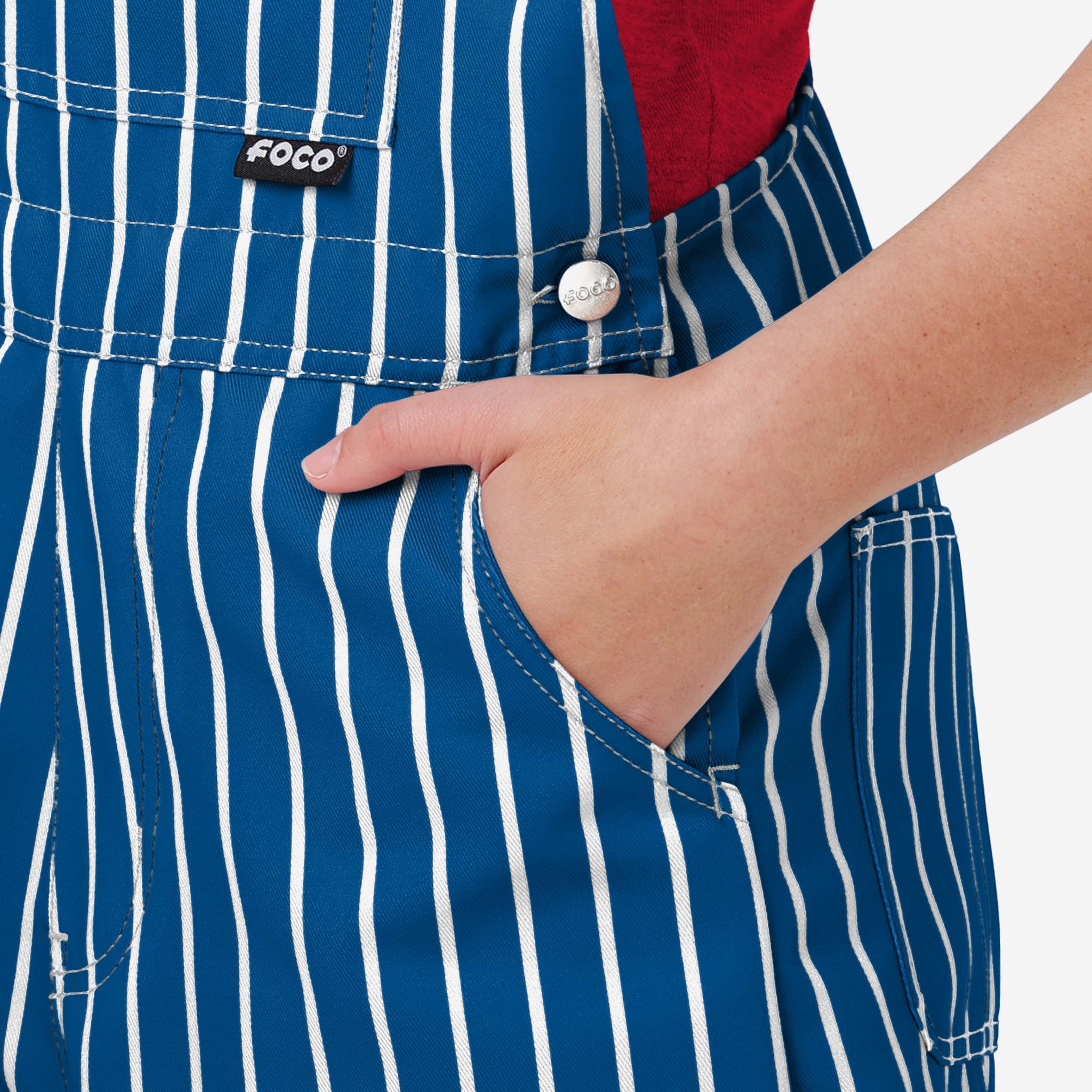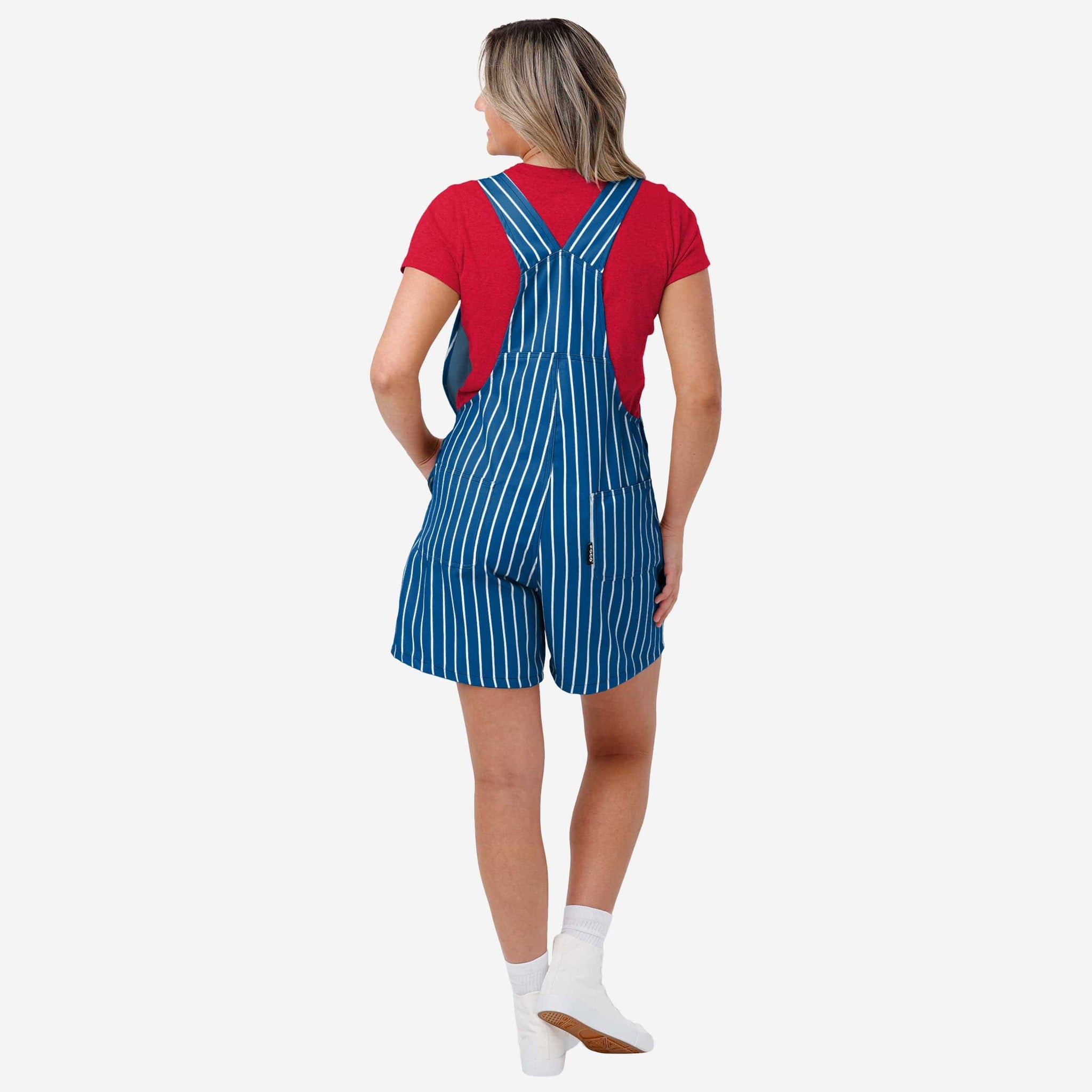 The bib pocket is perfect for storing your phone, makeup, jewelry, skincare products, fragrances, or other essentials, and the adjustable bib shoulder straps ensure a comfortable fit. Two back pockets provide even more storage space. These shortalls are made of sturdy and functional woven polyester canvas that is lightweight and breathable. They provide coverage and durability, so you can focus on cheering on your team without worrying about your outfit. This pinstripe style is so perfect for gameday that there's a good chance you'll be on the receiving end of a whole lot of postgame high fives and fist bumps, because your fellow fans will deem you the star of the game, responsible for every big play.