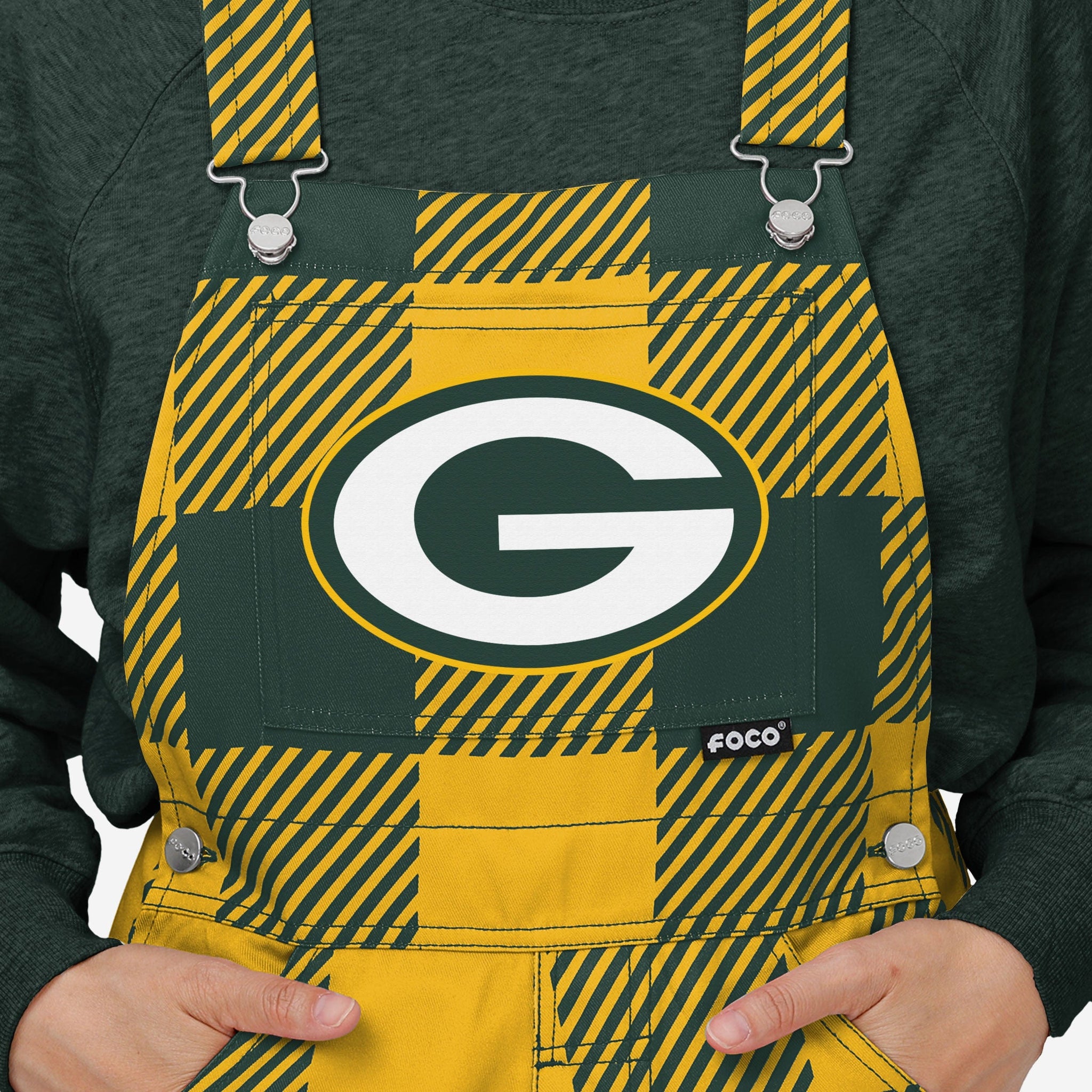 - All-over team-colored design: These overalls are covered in the official Green Bay Packers colors, so you can show your team spirit with pride.
