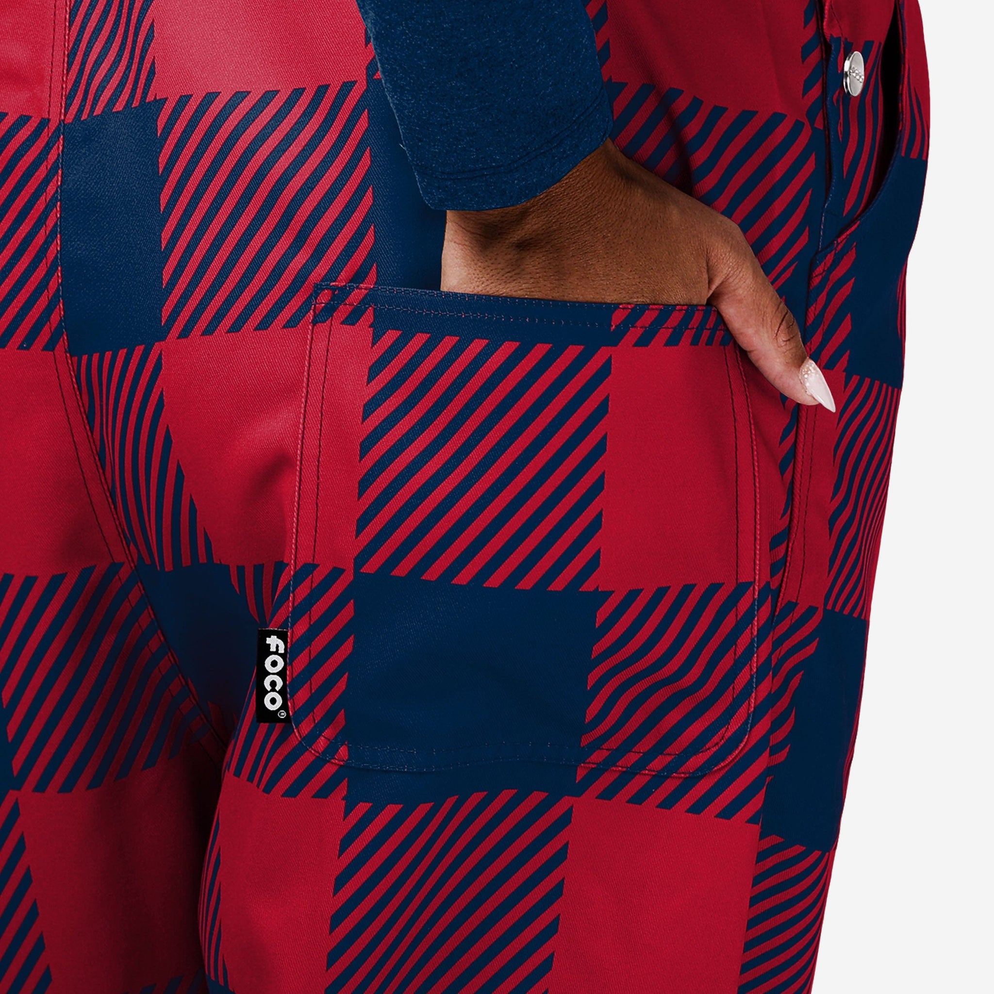 The bib pocket is perfect for storing your phone, makeup, jewelry, skincare products, fragrances, or other essentials, and the adjustable bib shoulder straps ensure a comfortable fit. Two back pockets provide even more storage space which will come in handy when you're out with the girls and showing off your trendy clothes. These overalls are made of sturdy and functional woven polyester canvas that is lightweight and breathable for maximum comfort while you're rocking this trendy and fashion-forward fan gear. They are long enough to provide coverage and durability, so you can focus on cheering on your team without worrying about your outfit. Just don't be surprised if a fellow fan asks for some help chopping wood when they see you in this epic lumberjack style.