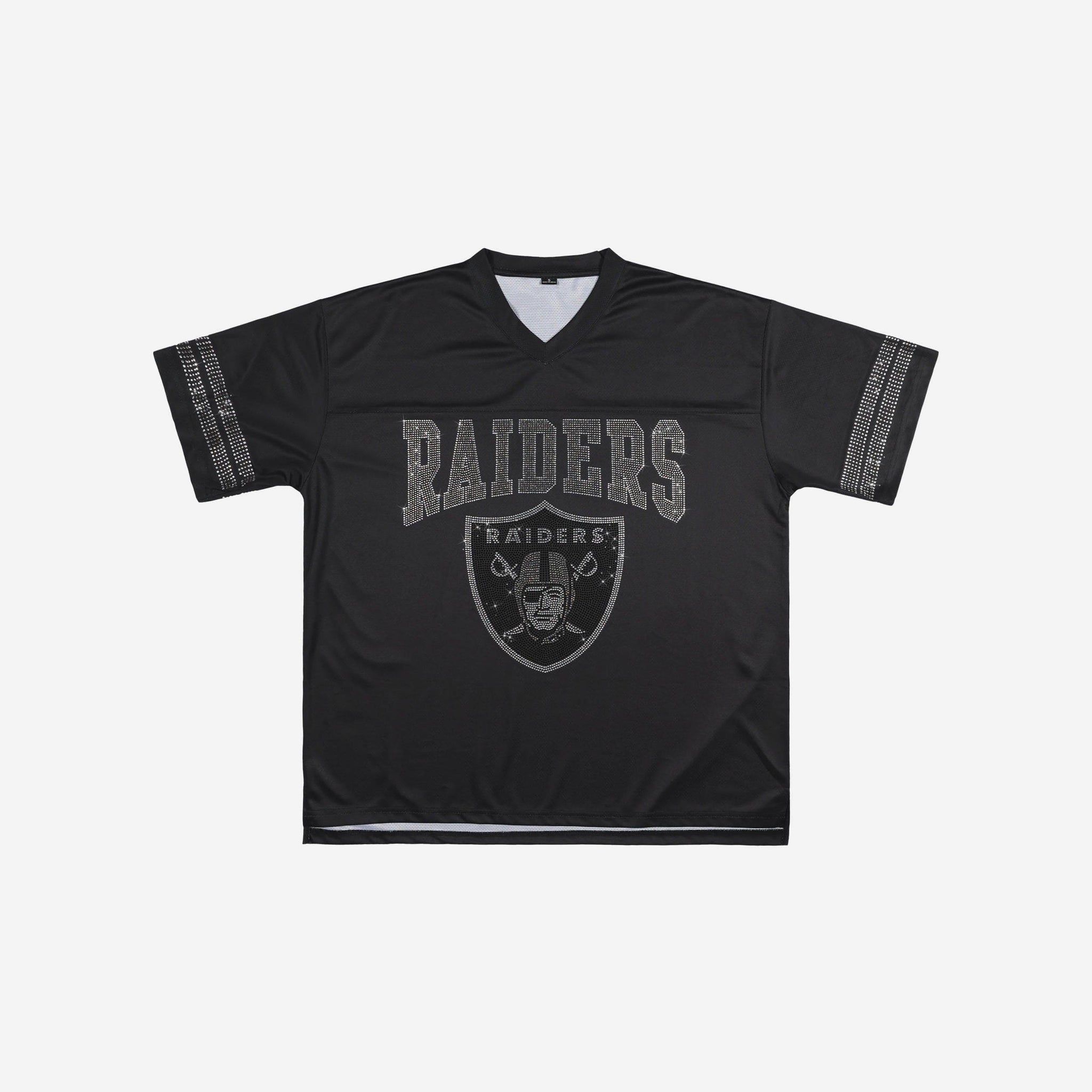 Las Vegas Raiders Womens Rhinestone Logo Oversized V-Neck Mesh T-Shirt FOCO S - FOCO.com